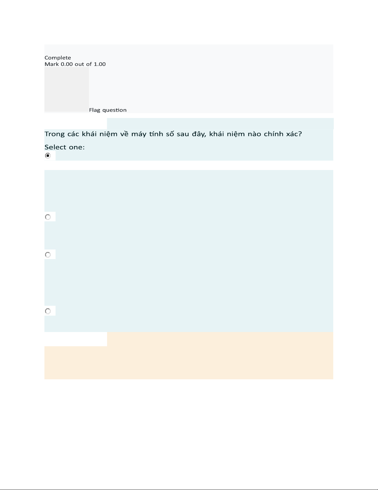 Không phương án nào đúng Feedback