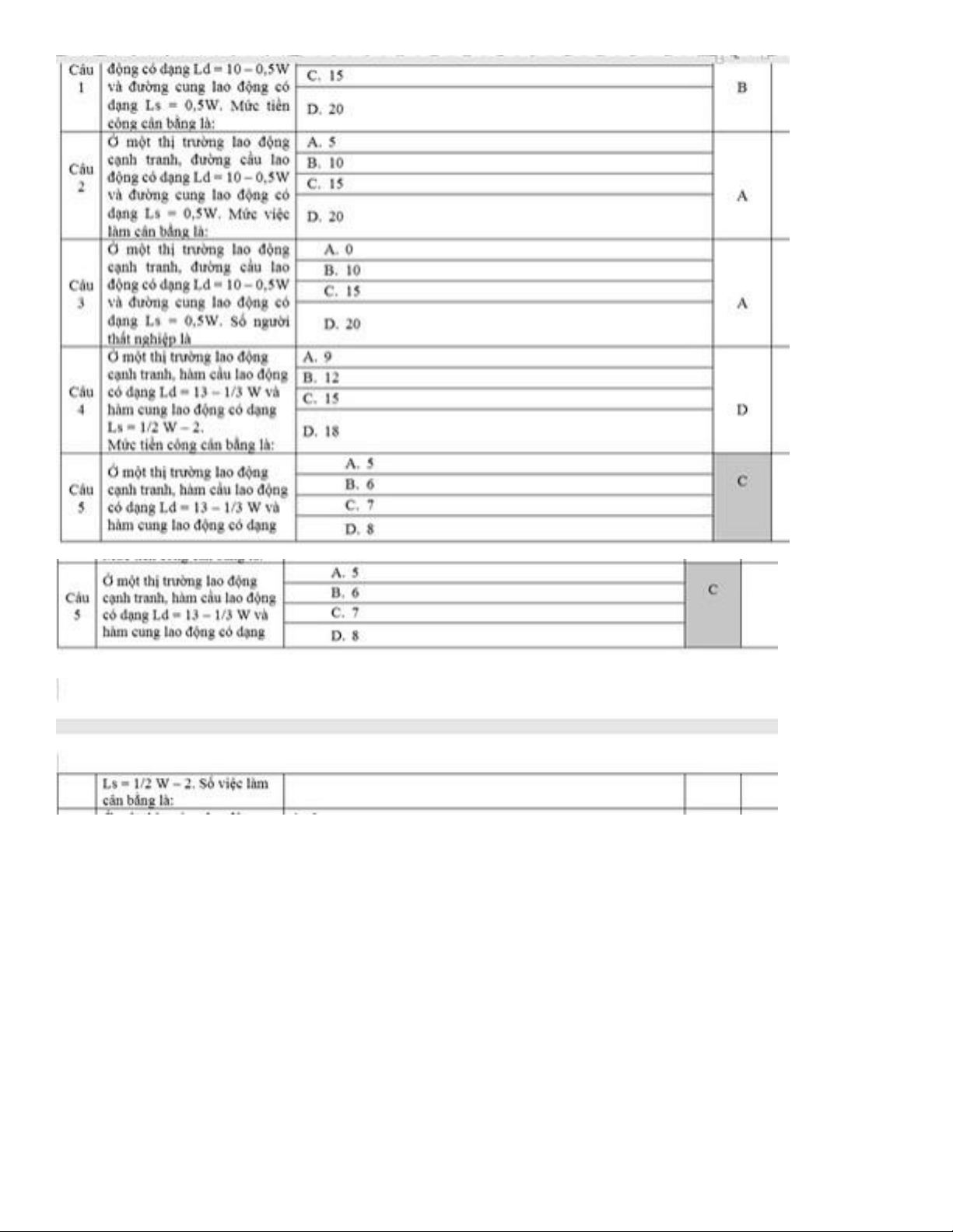 Câu 4: Trên thị trường cạnh tranh hoàn hảo, mức lương cố định của lao động da trắng (Ww) lớn hơn so với mức