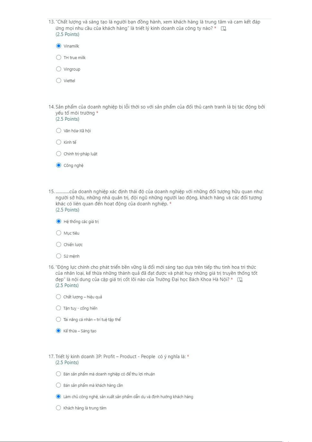 nghiệp nào? (0.5 Points) Vingroup Viettel TH true milk Vinamilk