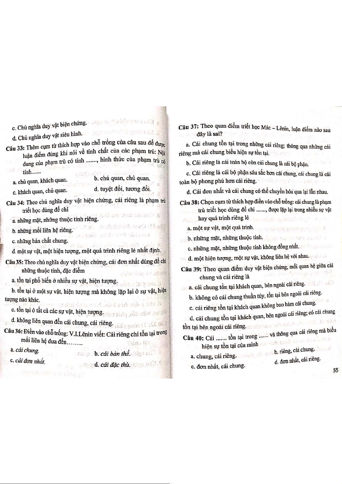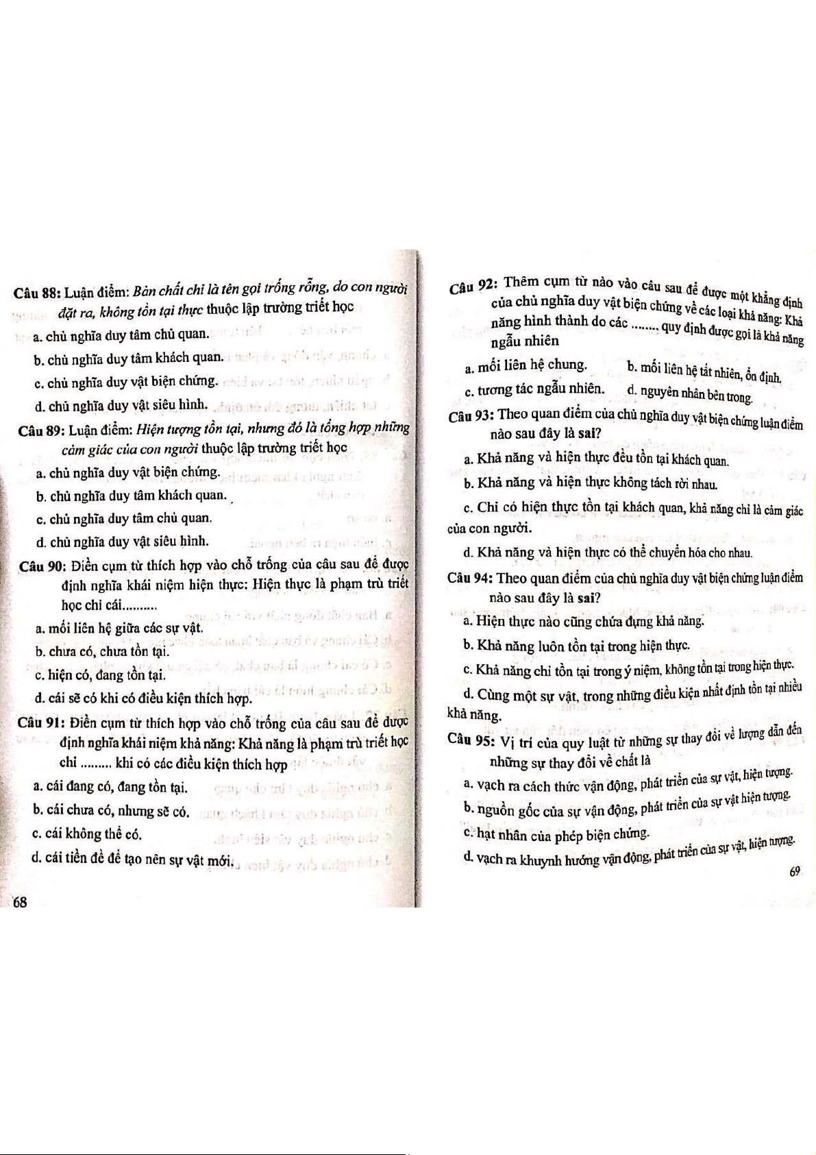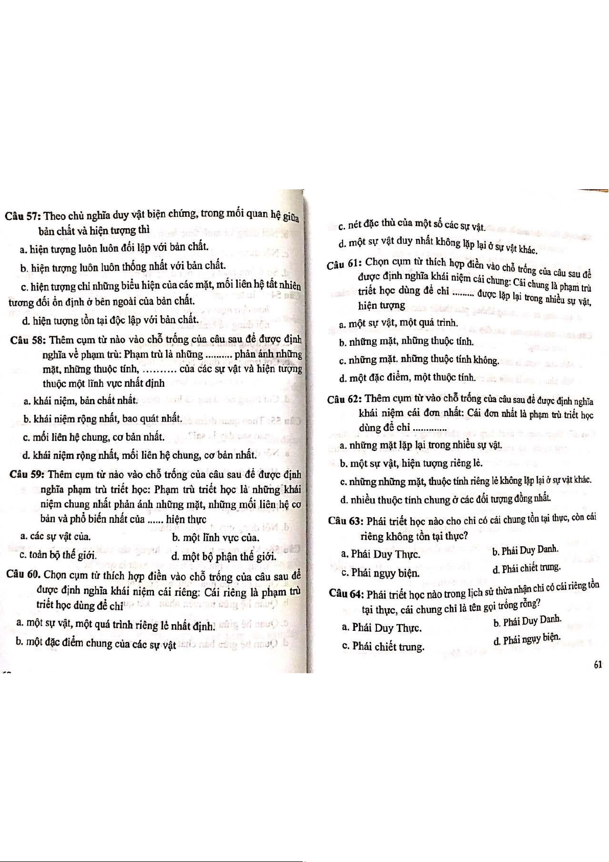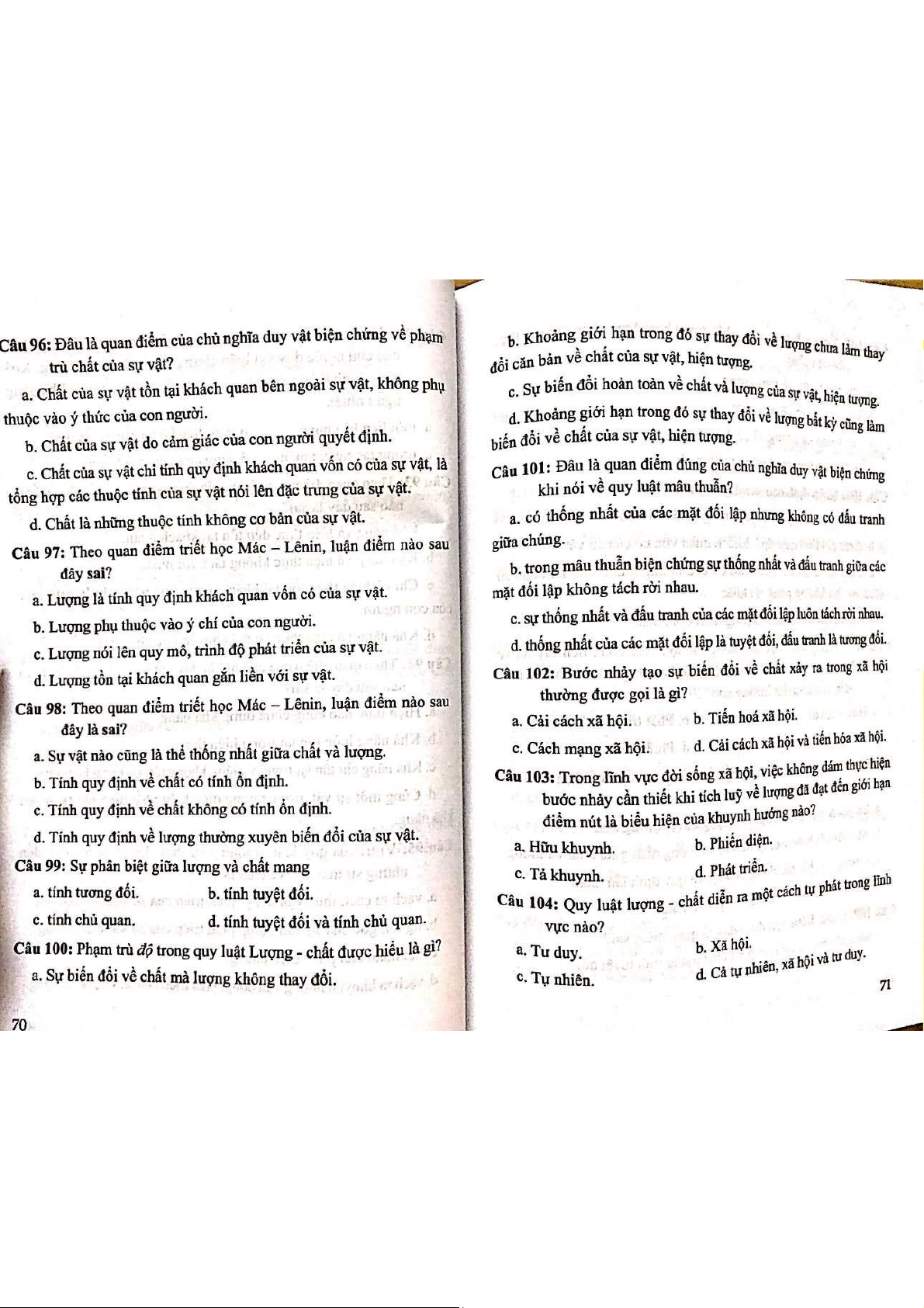 Ngân hàng câu hỏi triết học Mác - Lênin (MĐ 101)
