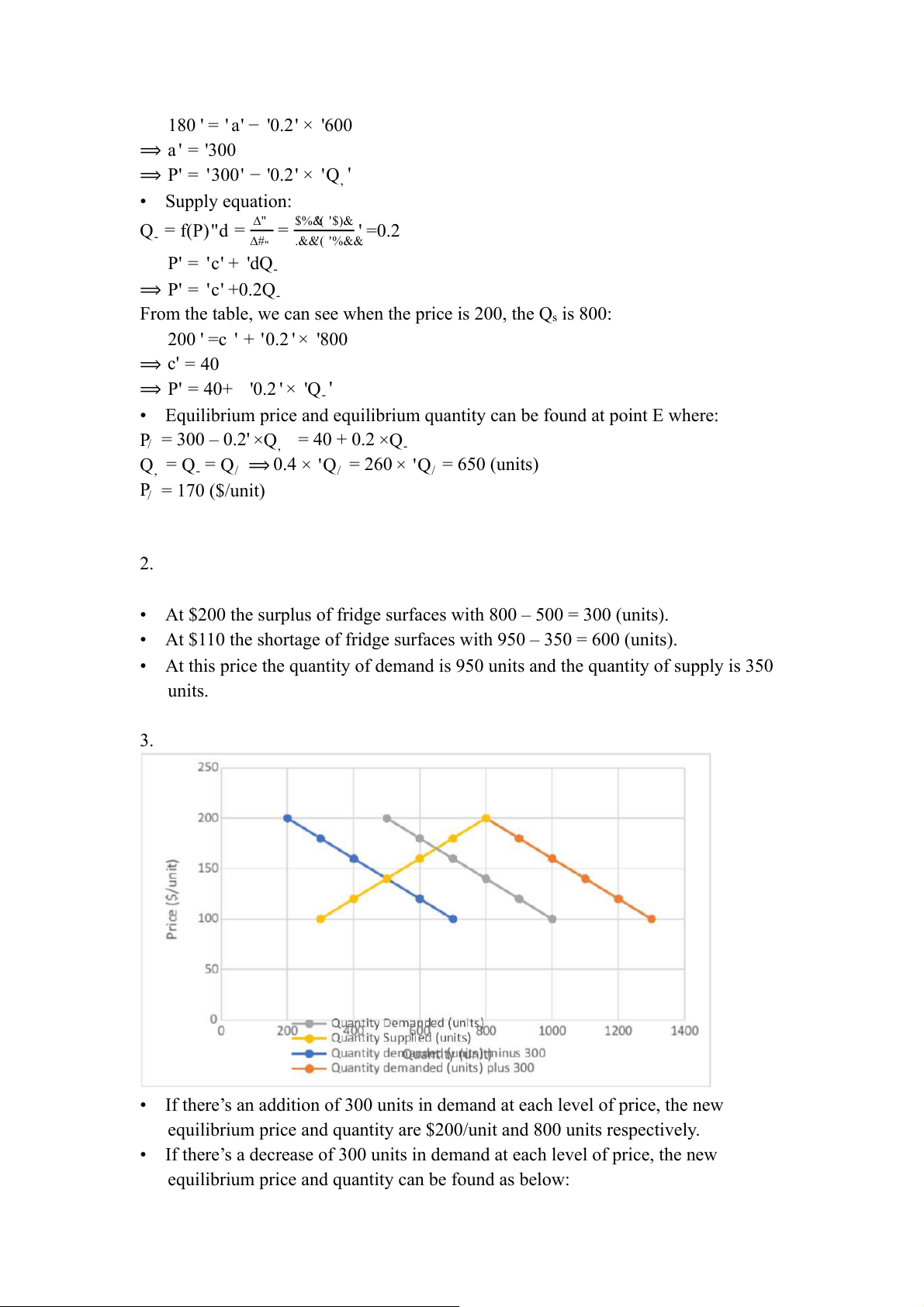 Q, = Q- = Q/ ⟹ 0.4 × 'Q/ = 260 × 'Q/ = 650 (units) P/ = 170 ($/unit) 2.