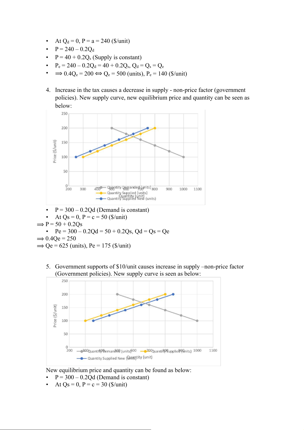 ⟹ 0.4Qe = 270-> Qe = 675 (units), Pe = 165 ($/unit) Exercise 2: 1.