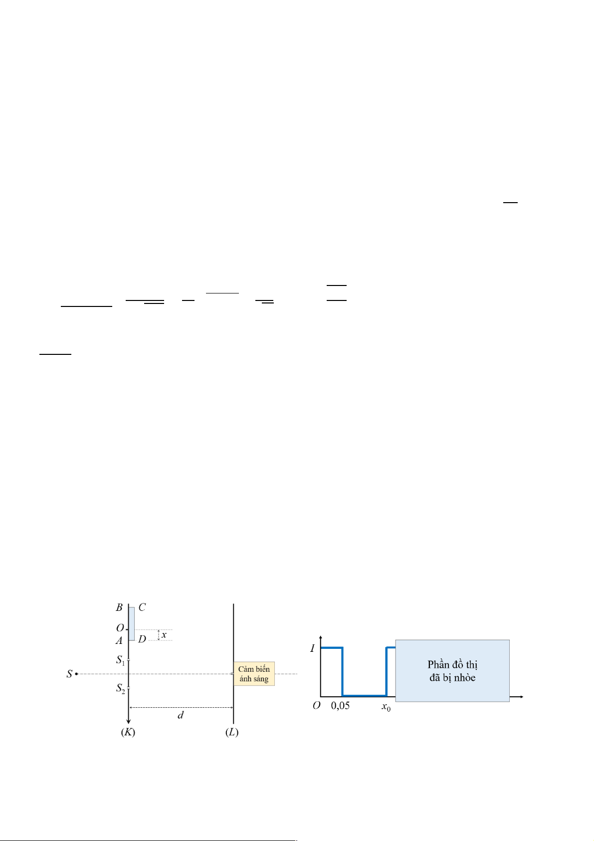 2. Khi 𝑥 = 0,05 mm, tại cảm biến: vân sáng thành vân tối → 𝐴 vừa tới 𝑆! ................ (0.5 điểm)