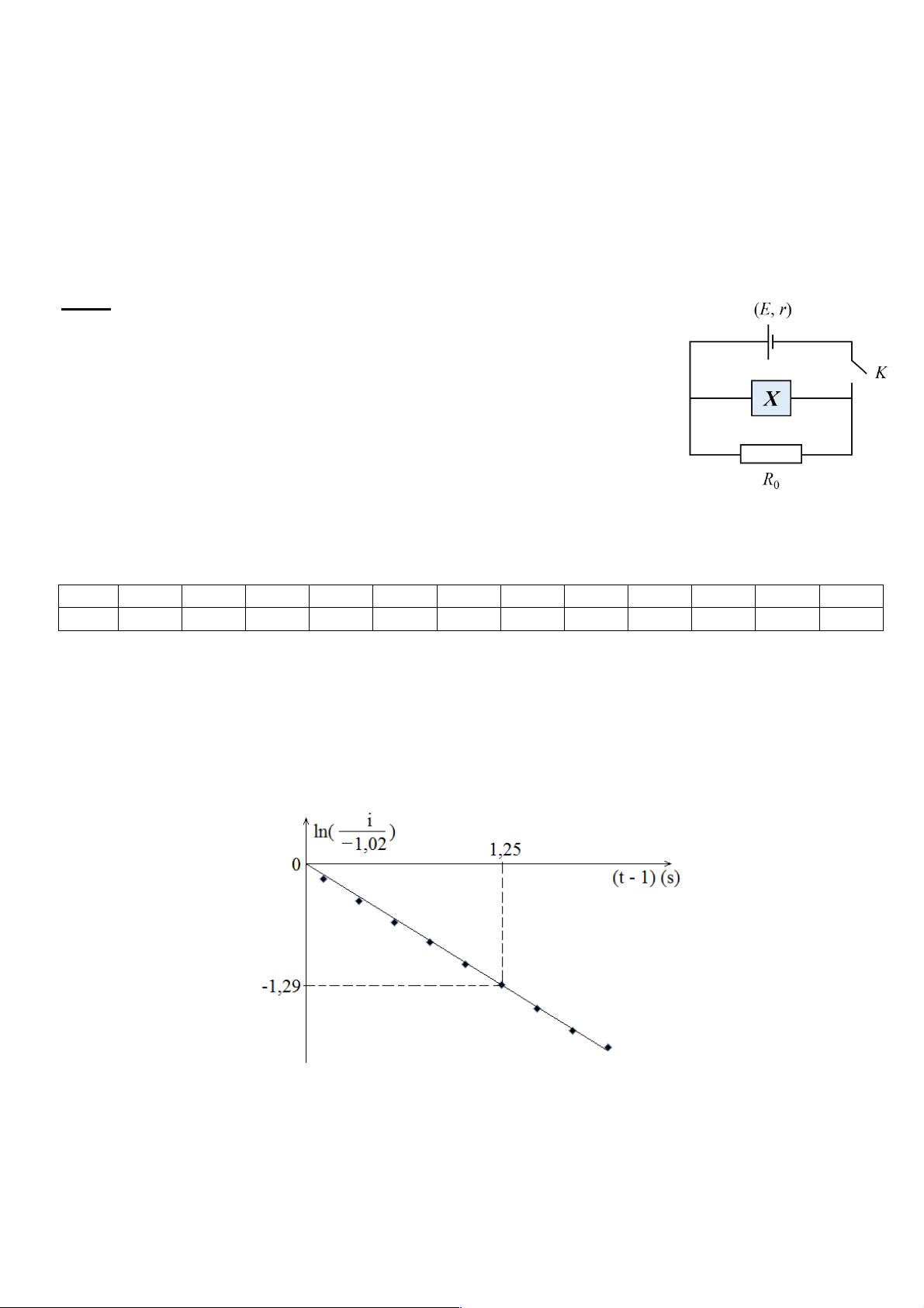 hợp, nhận được giá trị cường độ dòng điện qua điện trở 𝑅! ở các thời điểm tương ứng như sau: 𝑡 (s) 0,00 0,25 0,50 0,75 1,00 1,25 1,50 1,75 2,00 2,25 2,50 2,75 𝑖 (A) 1,46 1,46 1,46