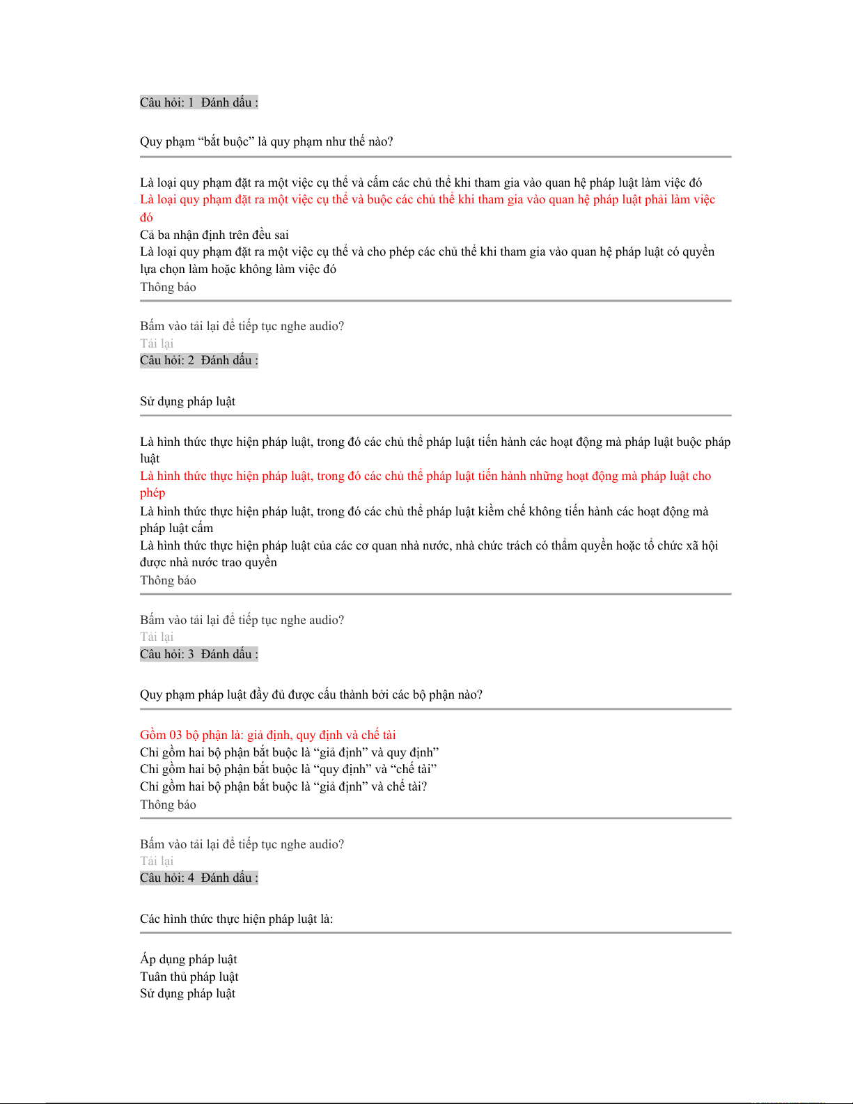Bấm vào tải lại để tiếp tục nghe audio? Tải lại Câu hỏi: 2 Đánh dấu : Sử dụng pháp luật