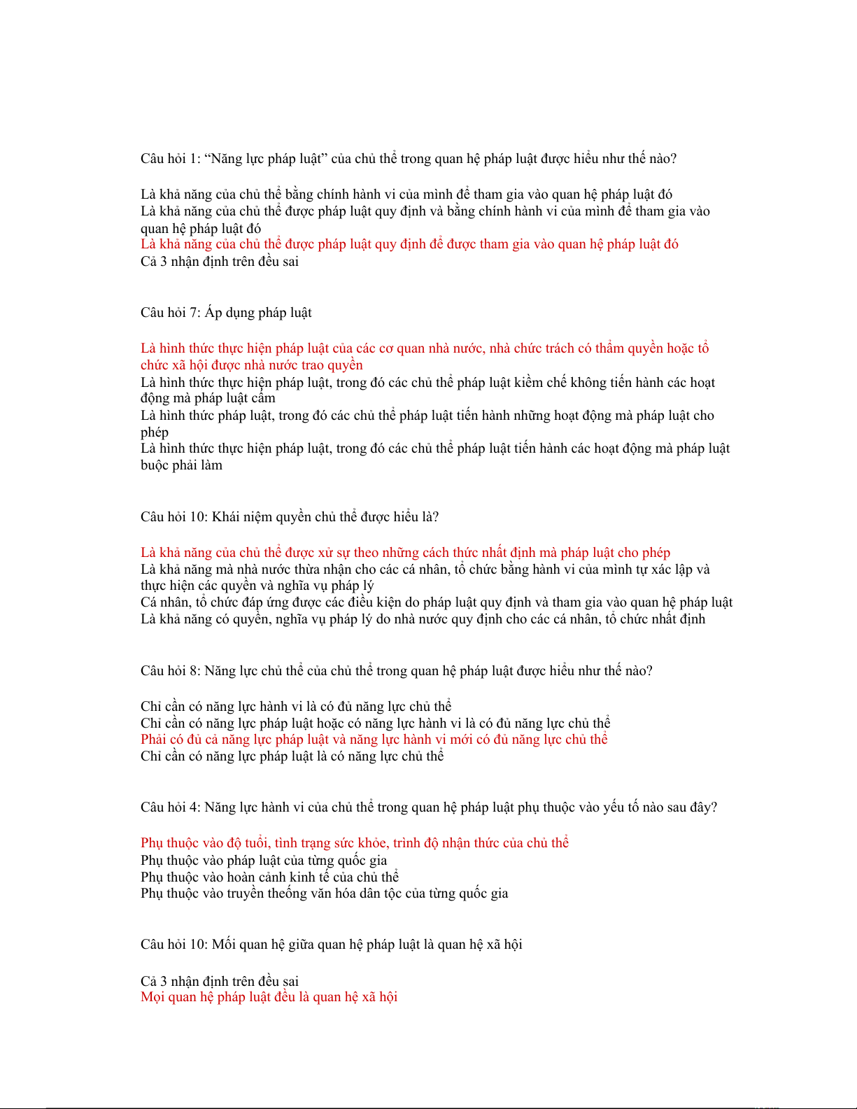 Câu hỏi 8: Năng lực chủ thể của chủ thể trong quan hệ pháp luật được hiểu như thế nào?