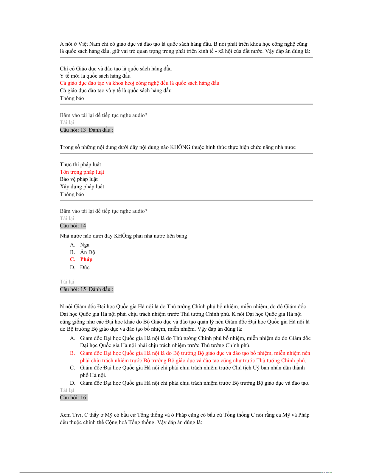 Bấm vào tải lại để tiếp tục nghe audio? Tải lại Câu hỏi: 14