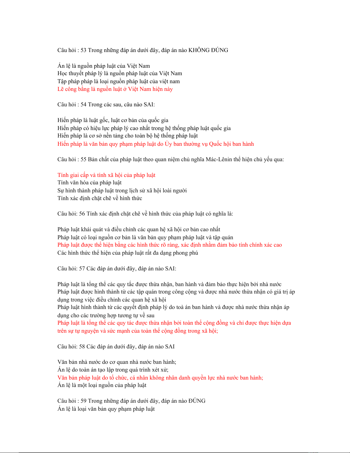 Đâu không phải là loại nguồn pháp luật của Việt Nam hiện nay? Văn bản quy phạm. Tập quán pháp. Điều ước quốc tế. Lẽ công bằng. Thông báo