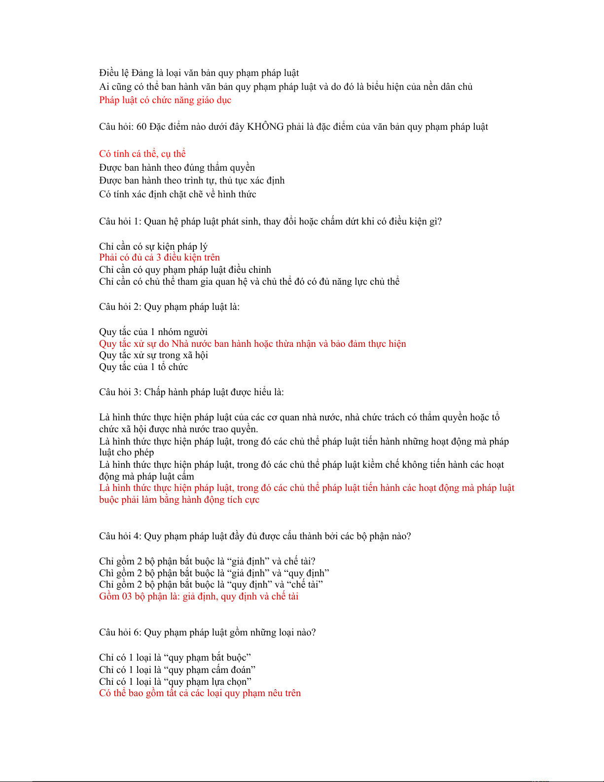 Câu hỏi 6: Quy phạm pháp luật gồm những loại nào?