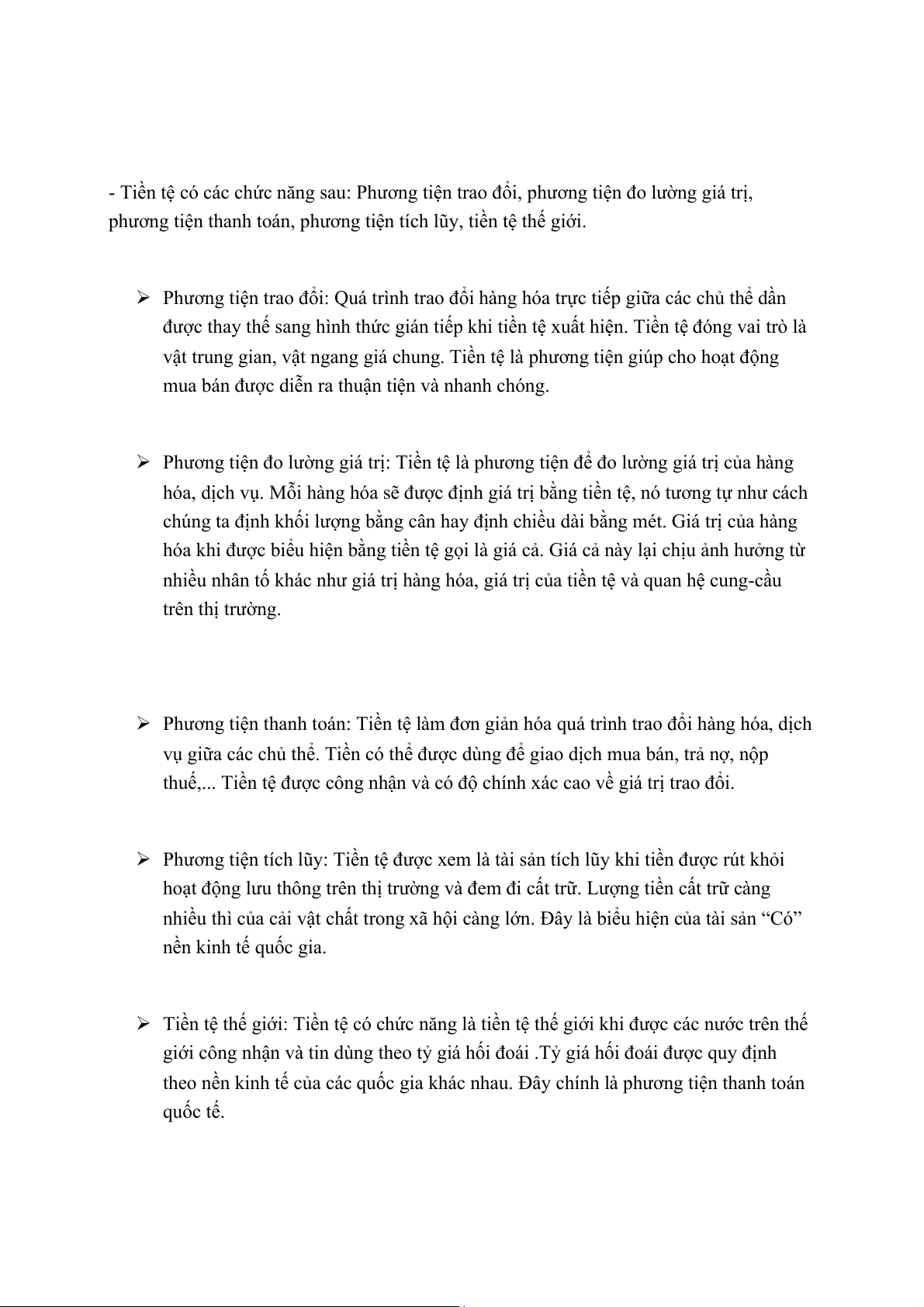 - Tiền tệ có các chức năng sau: Phương tiện trao đổi, phương tiện đo lường giá trị,