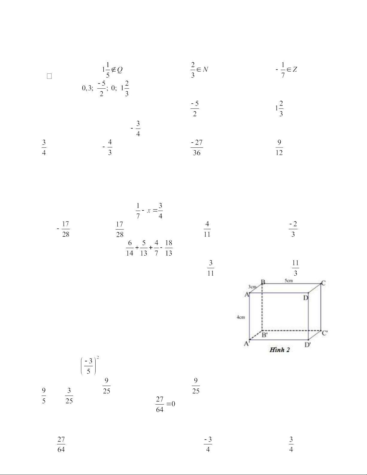9/ Với dữ liệu trong hình 2. Thể tích hình hộp chữ nhật đó là: A. 15 cm3 B. 20 cm3 C. 32 cm3 D. 60 cm3 10/ Giá trị của bằng: B. C. - A. D. là:
