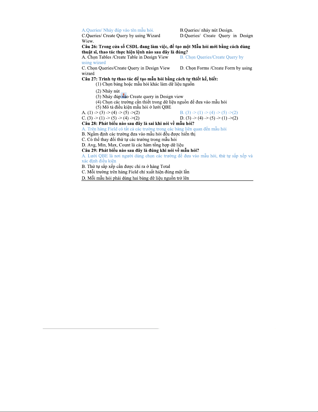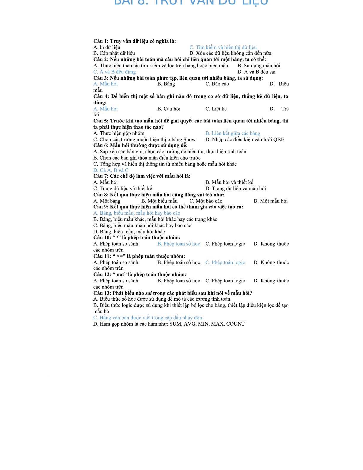 Trắc Nghiệm Bài 8: Truy Vấn Dữ Liệu - Học Phần Thực Hành
