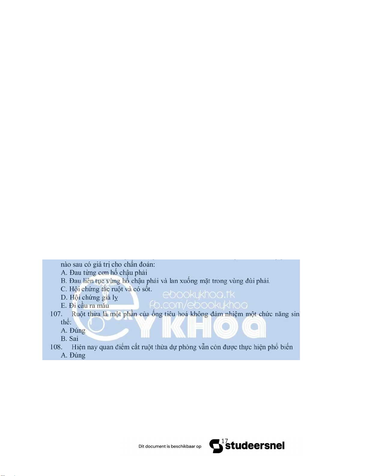 108. Hiện nay quan điểm cắt ruột thừa dự phòng vẫn còn được thực hiện phổ biến A. Đúng B. Sai