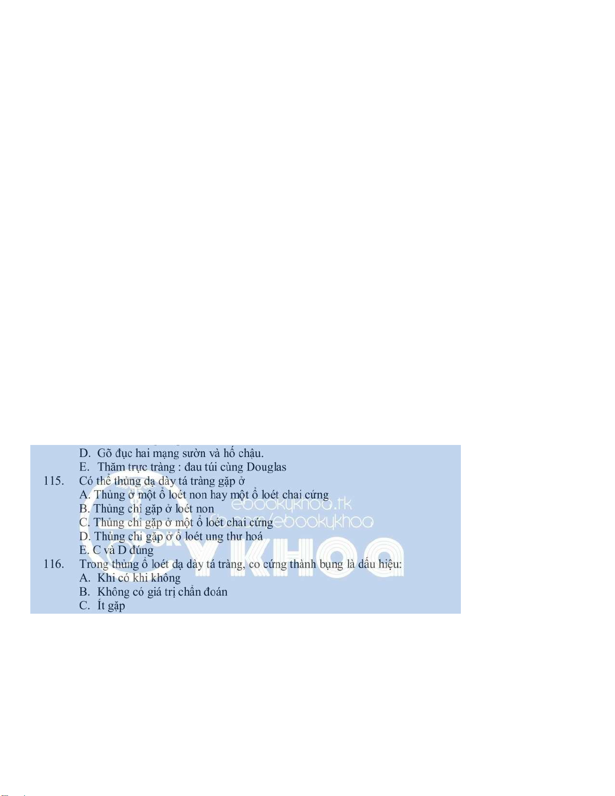 115. Có thể thủng dạ dày tá tràng gặp ở