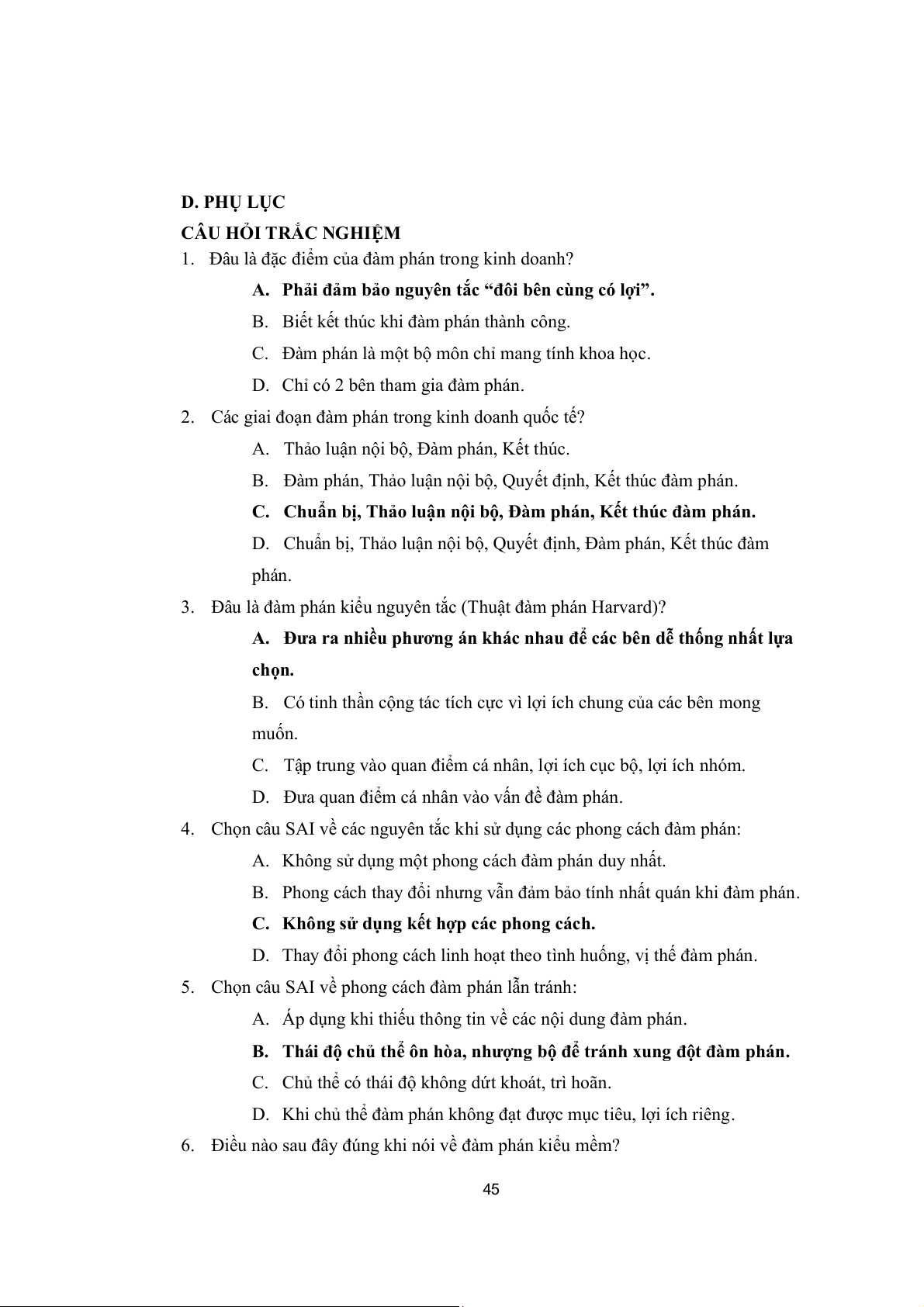 6. Điều nào sau đây đúng khi nói về đàm phán kiểu mềm? 45