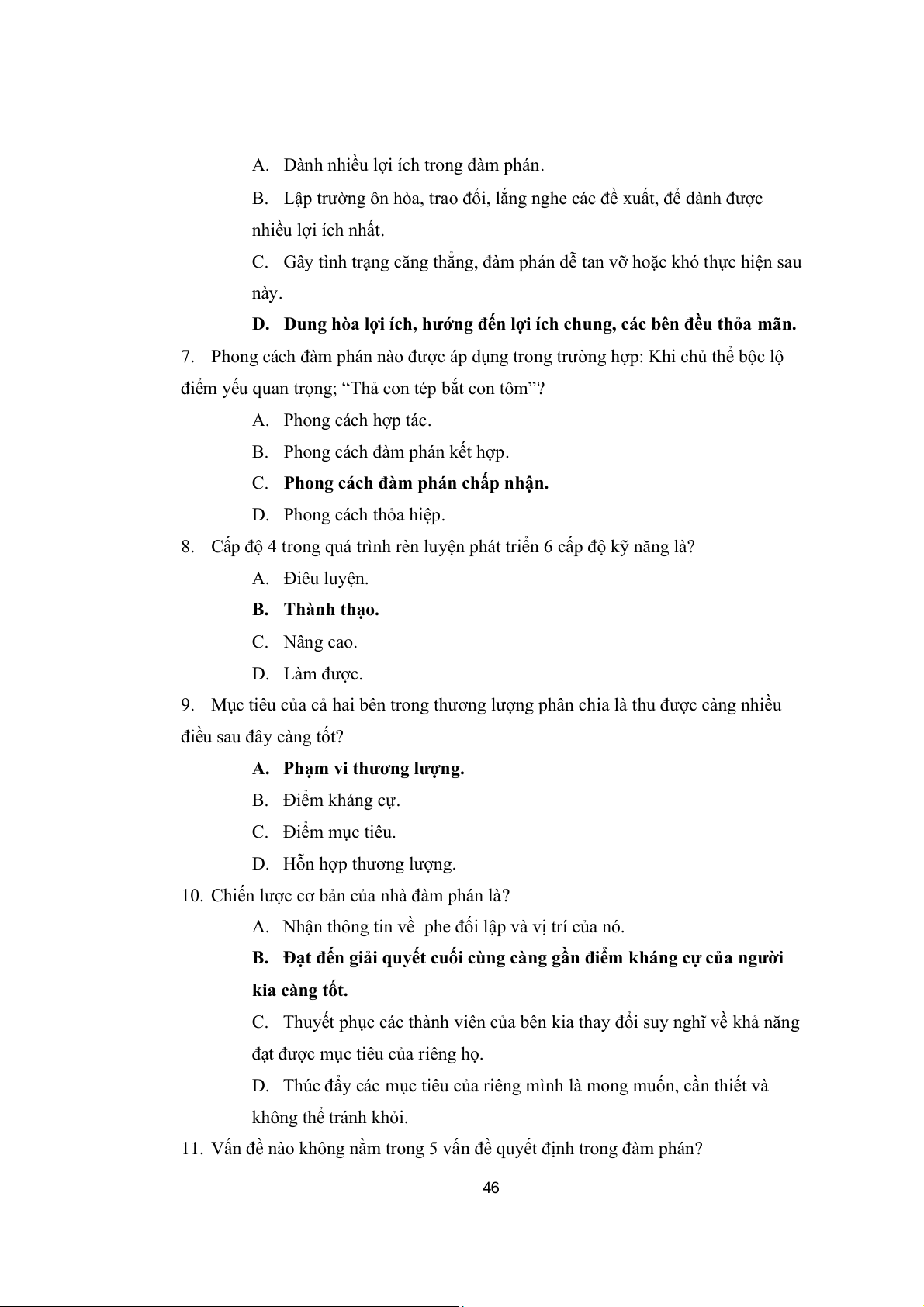 11. Vấn đề nào không nằm trong 5 vấn đề quyết định trong đàm phán? 46