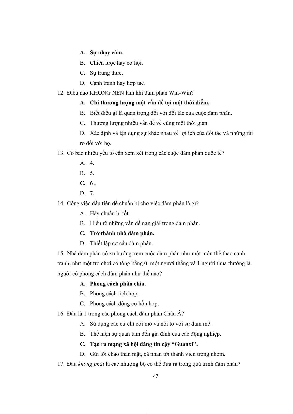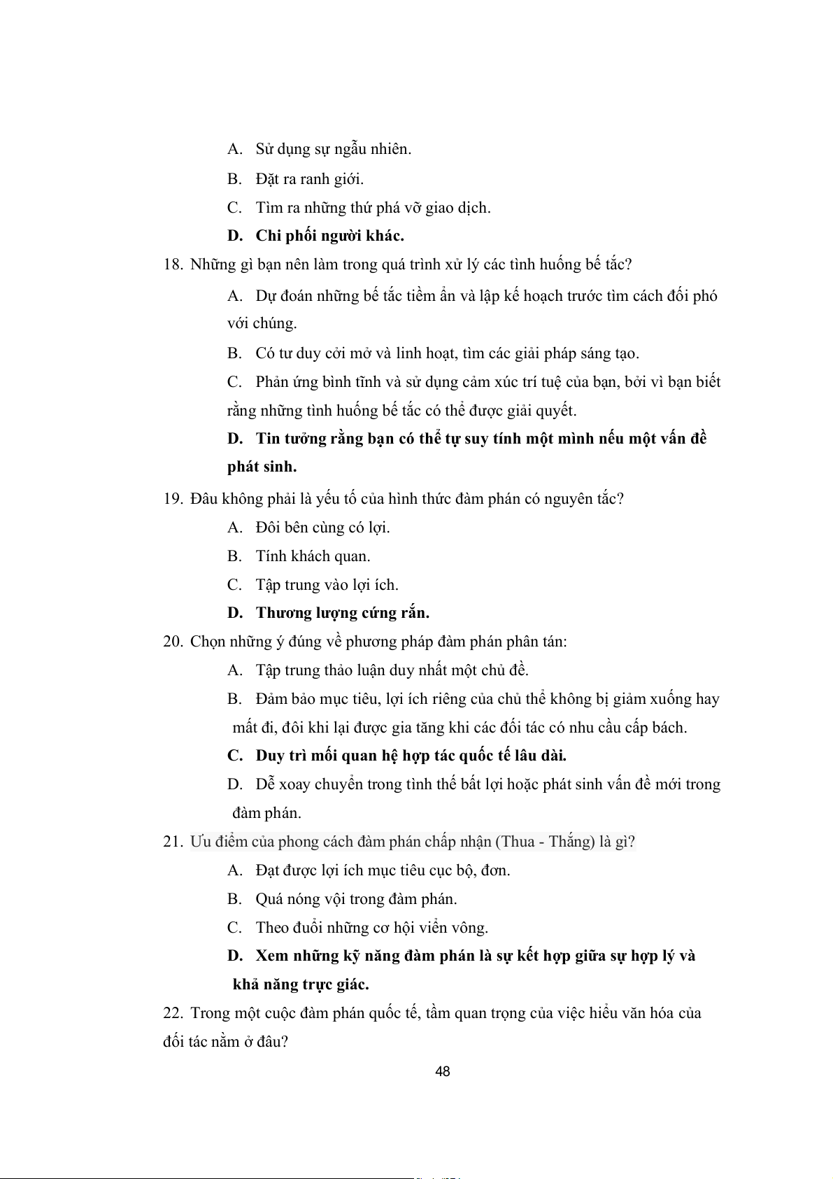 22. Trong một cuộc đàm phán quốc tế, tầm quan trọng của việc hiểu văn hóa của đối tác nằm ở đâu? 48