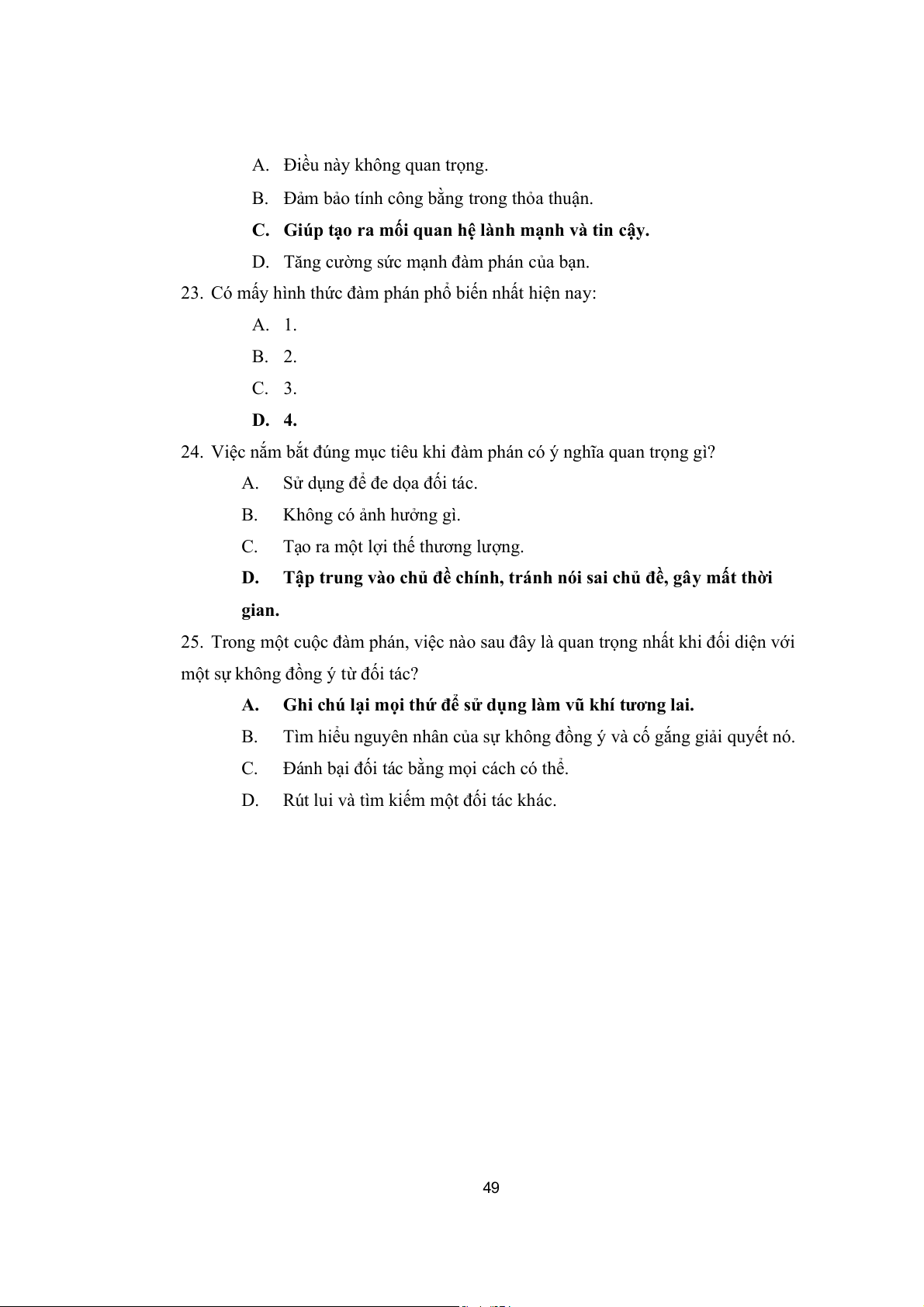 25. Trong một cuộc đàm phán, việc nào sau đây là quan trọng nhất khi đối diện với