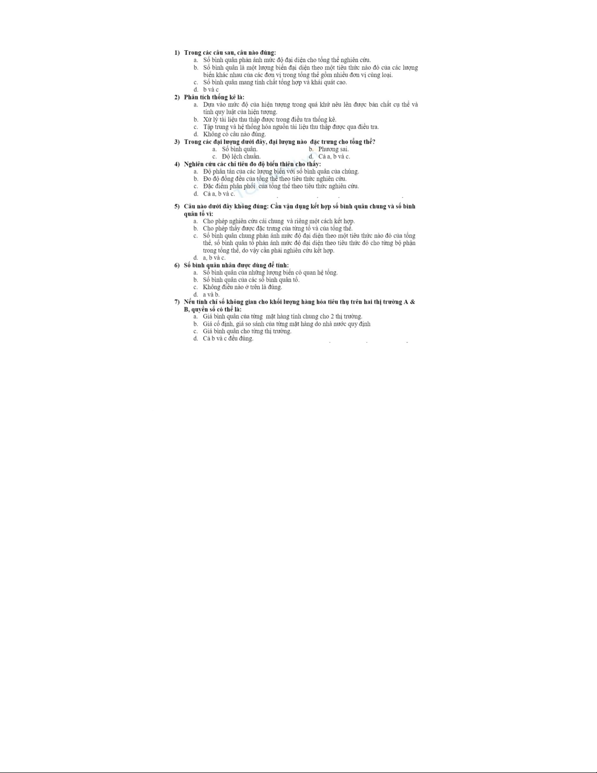 Trắc nghiệm câu hỏi quan trọng & công thức môn Nguyên lý thống kê| Trường Đại học Kinh tế Quốc Dân