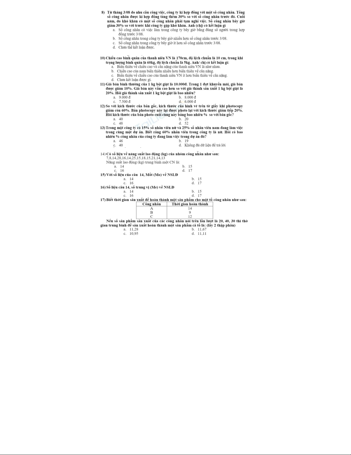 Bài Tập Tổng Hợp Môn Thống Kê Doanh Nghiệp - Năm 2018 & 2019