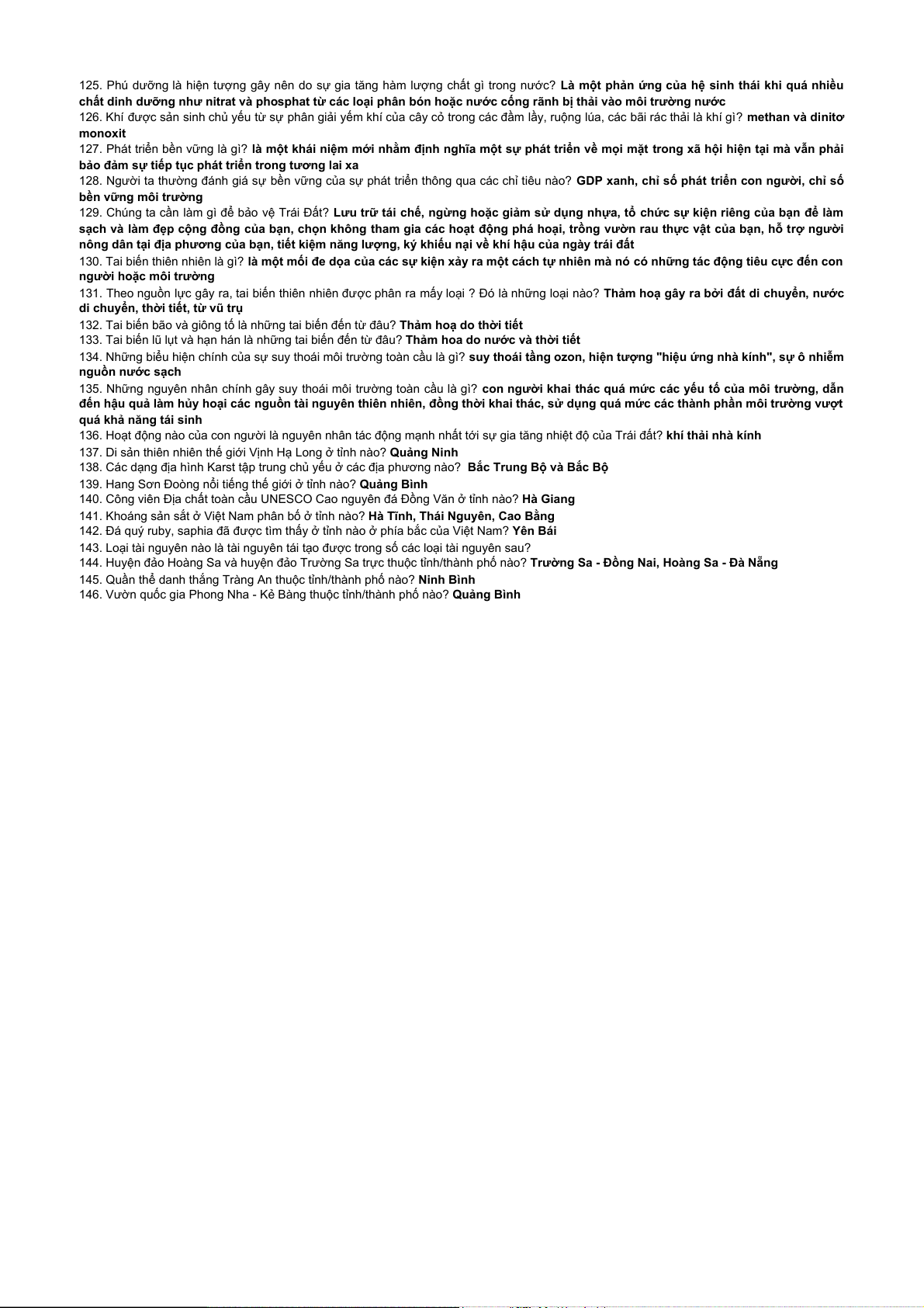 146. Vườn quốc gia Phong Nha - Kẻ Bàng thuộc tỉnh/thành phố nào? Quảng Bình