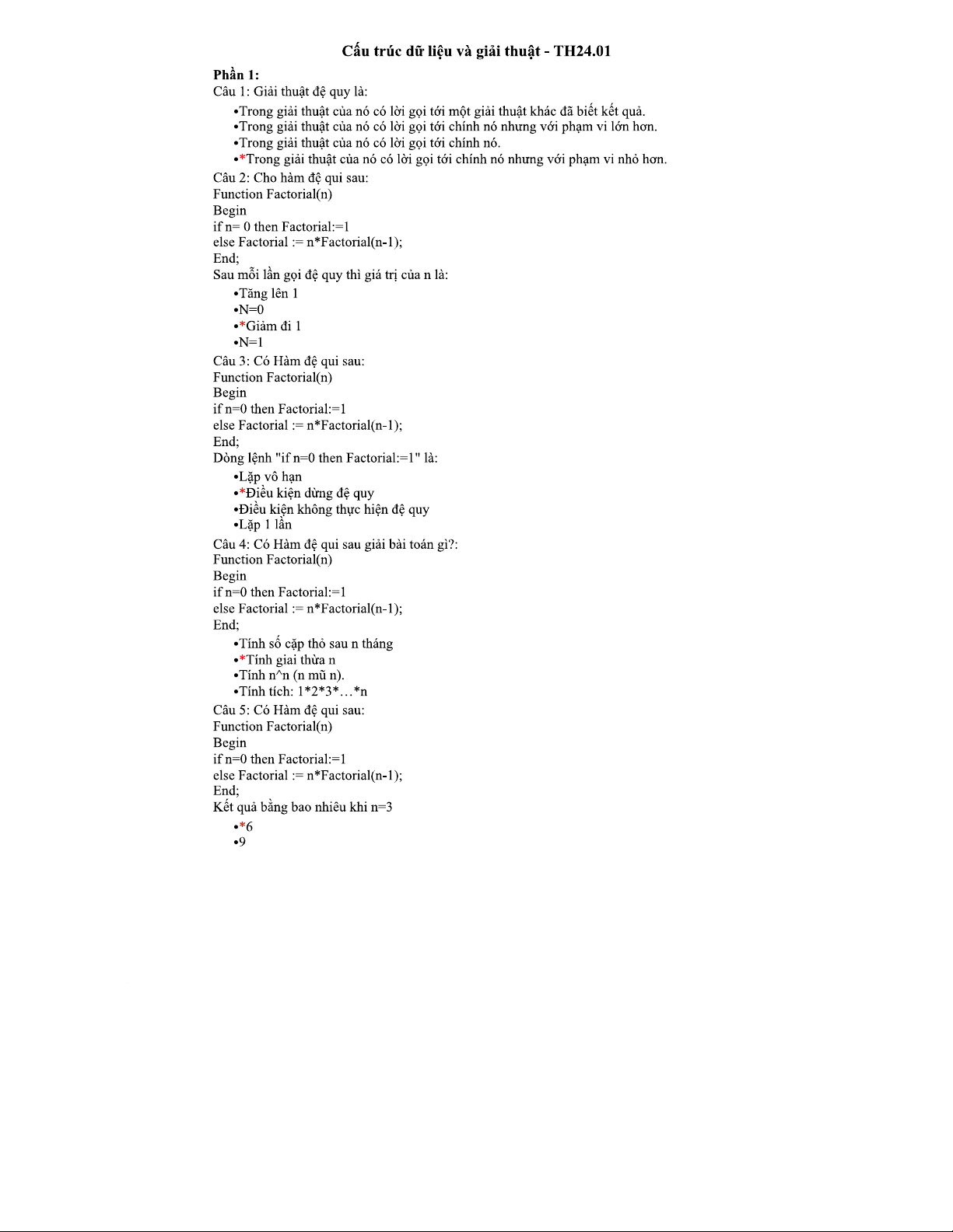 Trắc nghiệm Cấu trúc Dữ liệu và Giải thuật - TH24