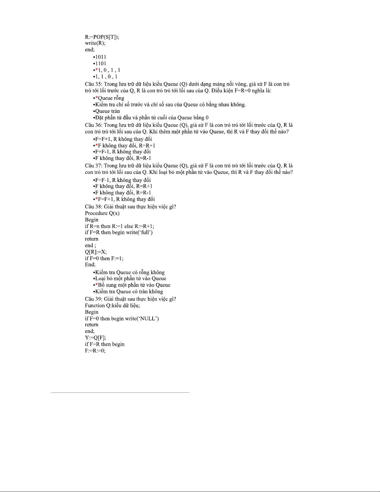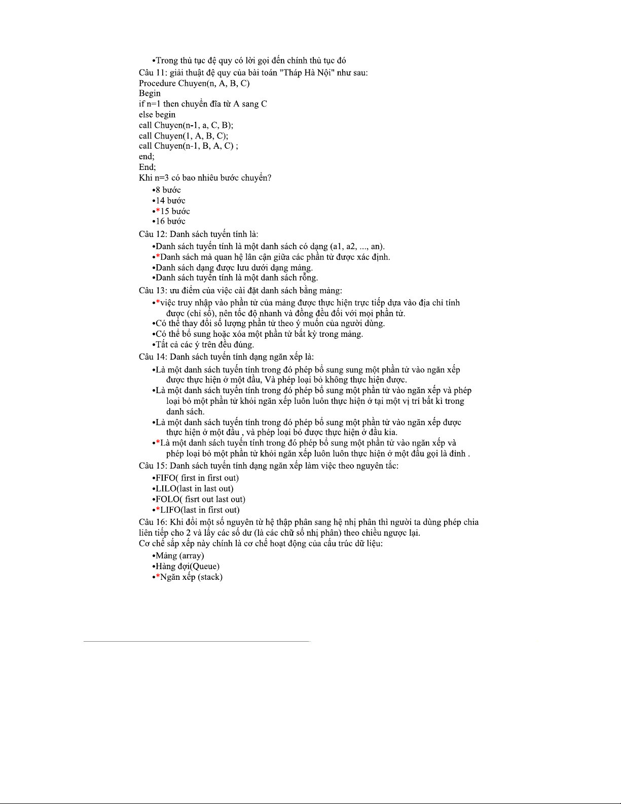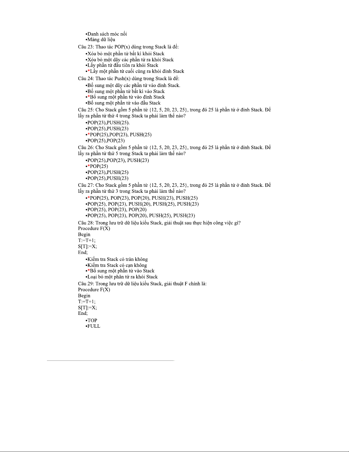 Bản sao Câu hỏi ôn tập trắc nghiệm môn Cấu trúc dữ liệu và giải thuật | Trường đại học kinh doanh và công nghệ Hà Nội