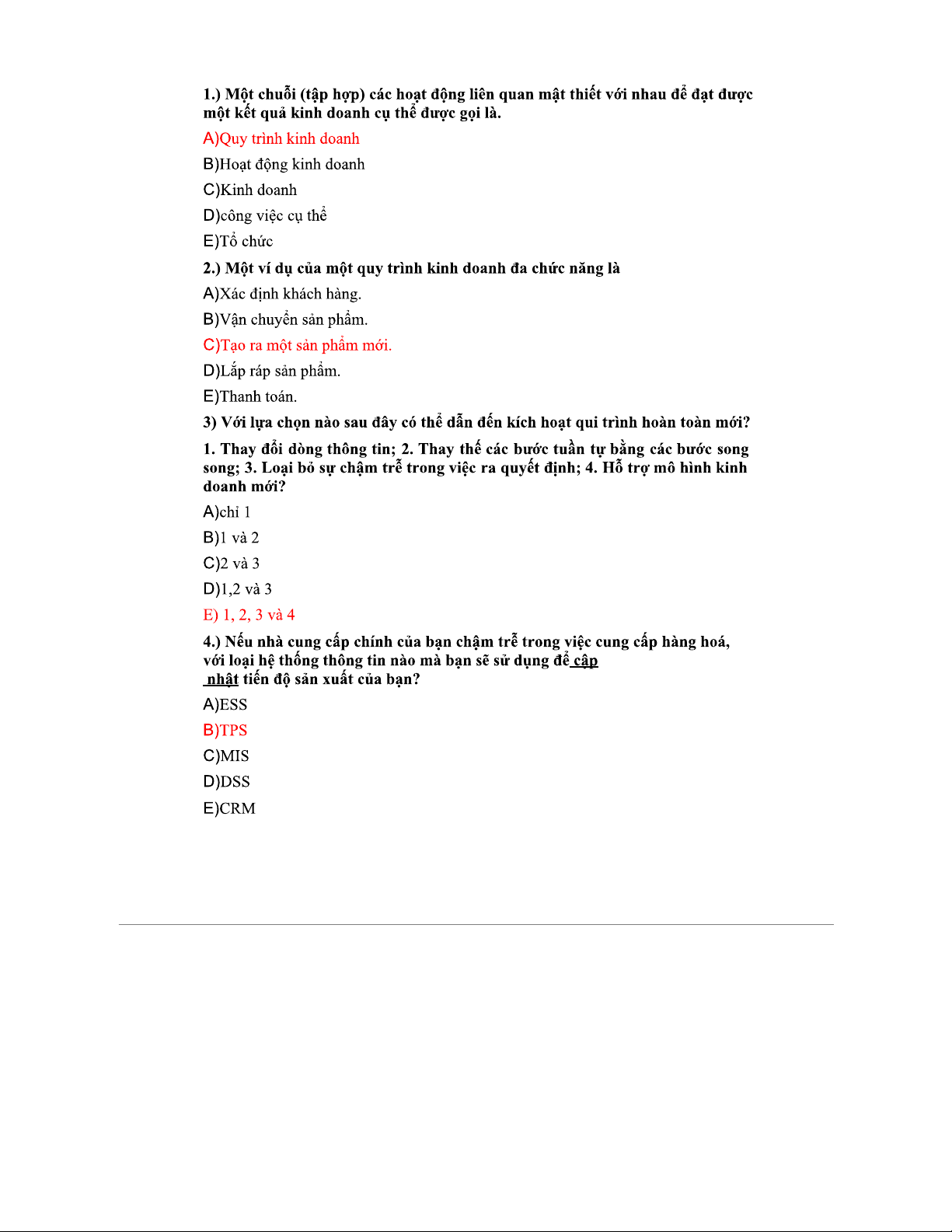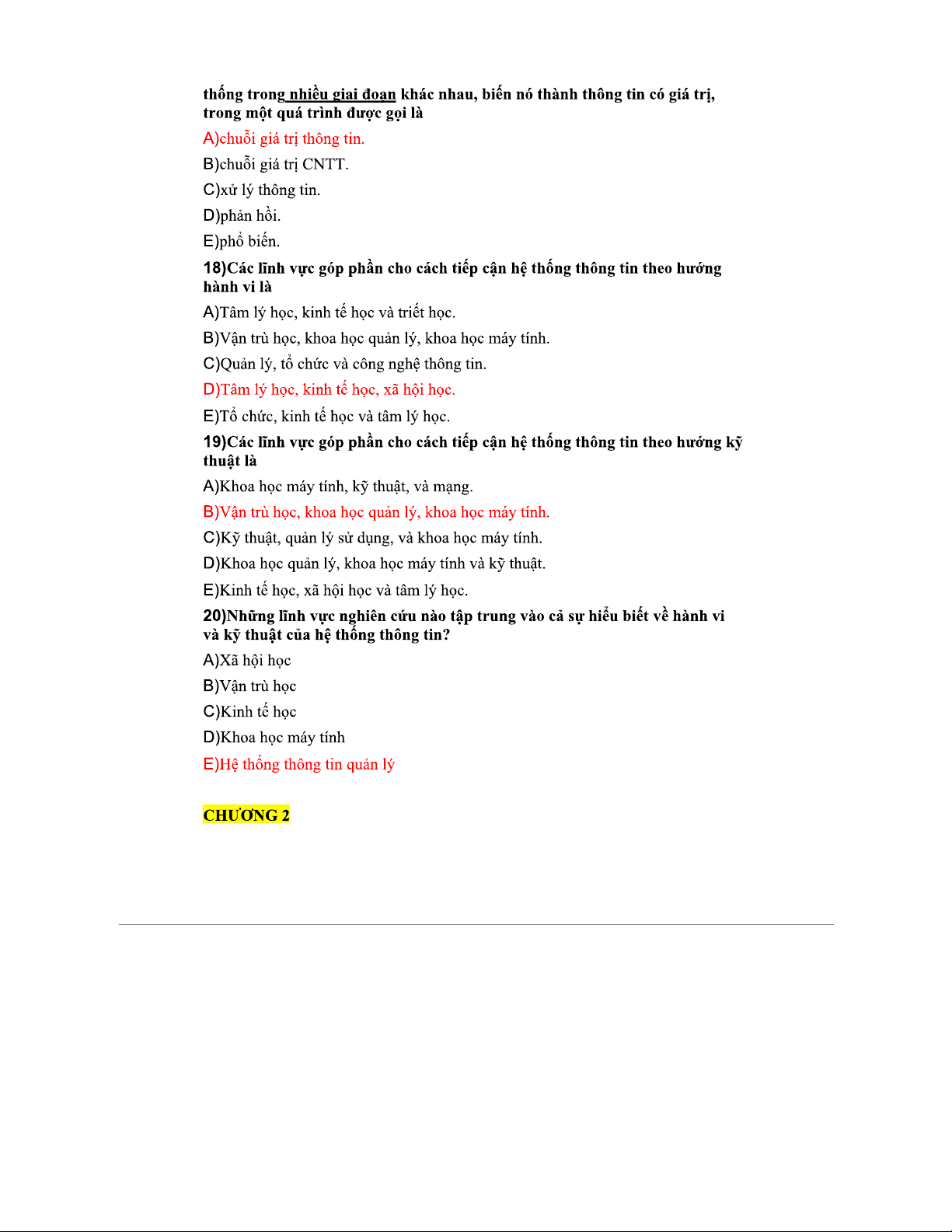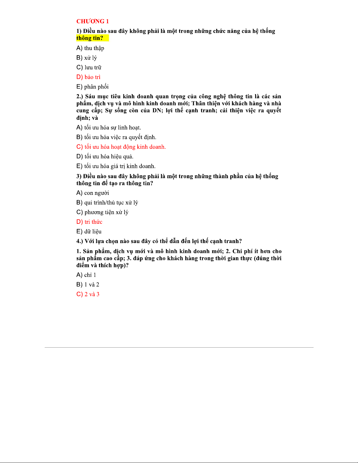 Trắc nghiệm Chương 1 & 2 Hệ Thống Thông Tin (HTTT)