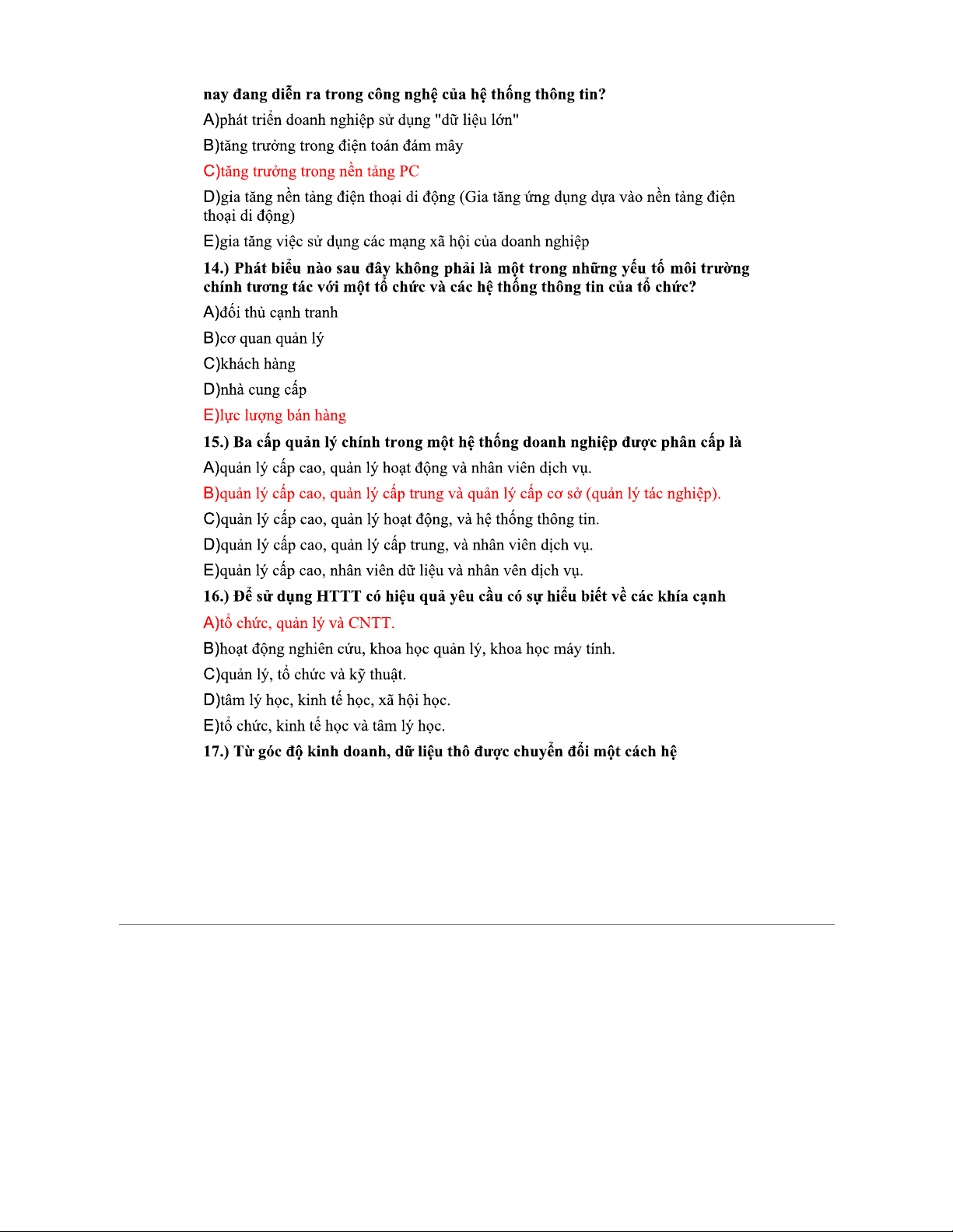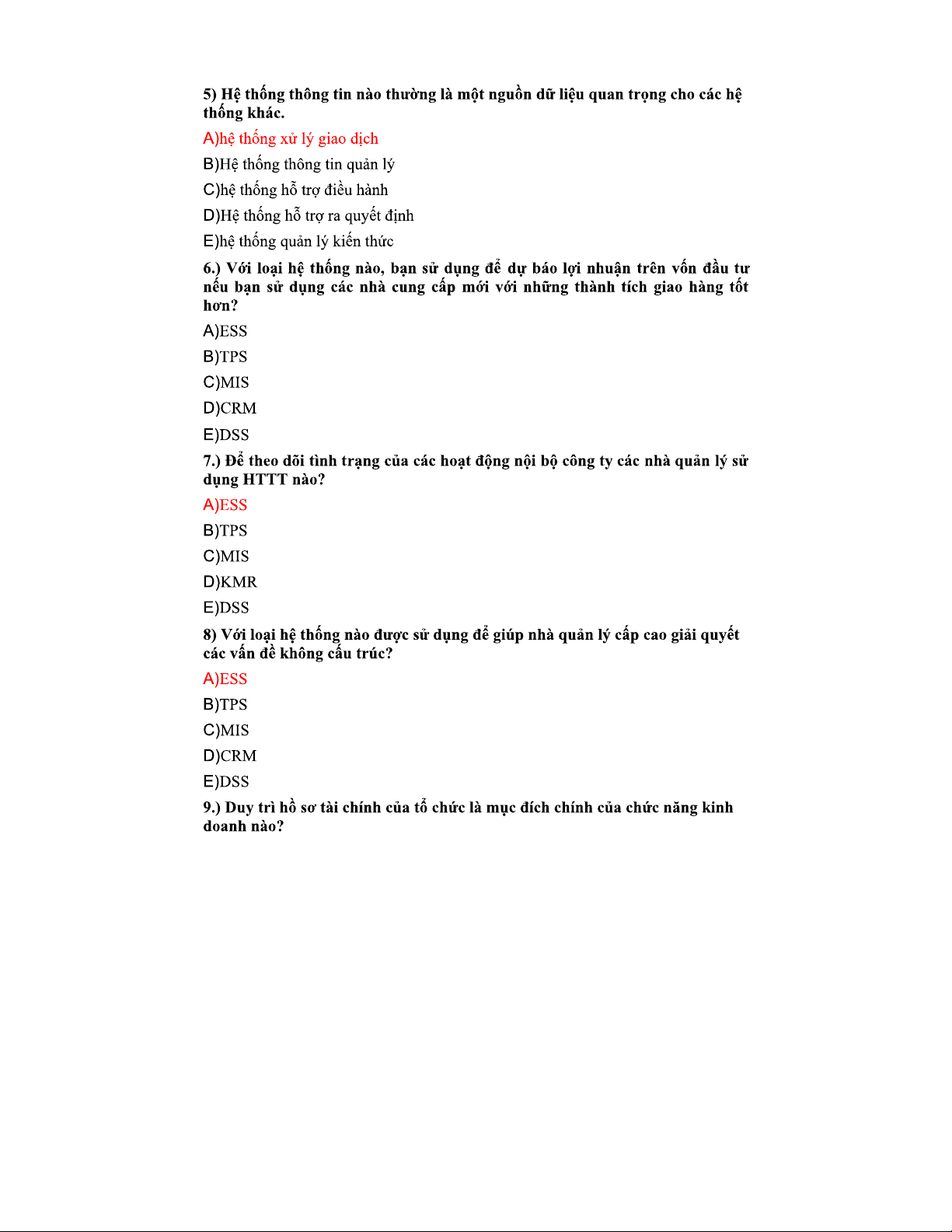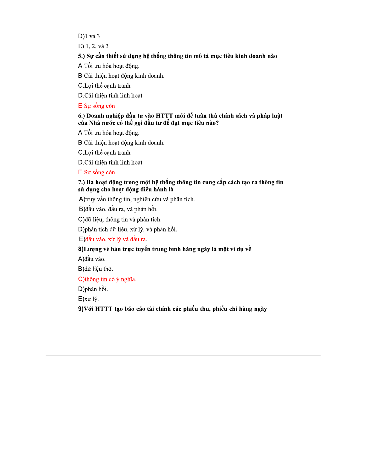 Trắc nghiệm Chương 1 & 2 Hệ Thống Thông Tin (HTTT)