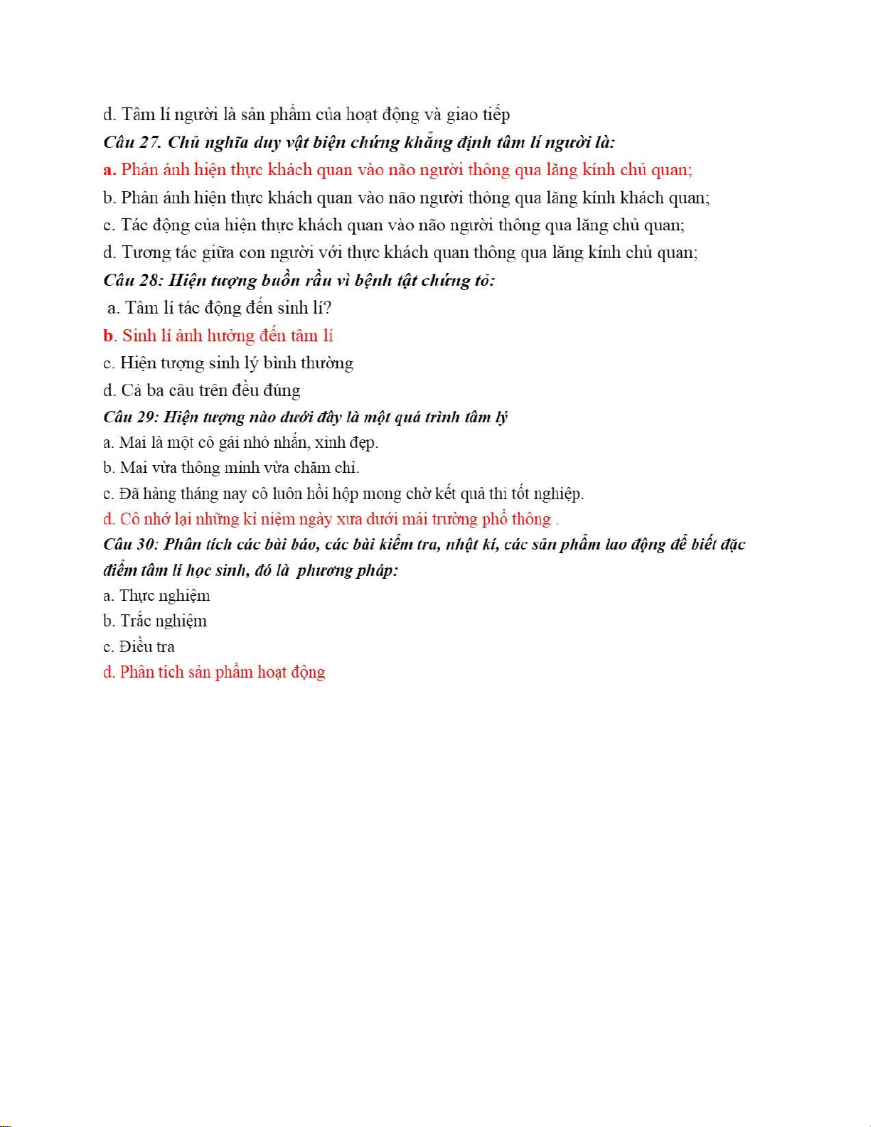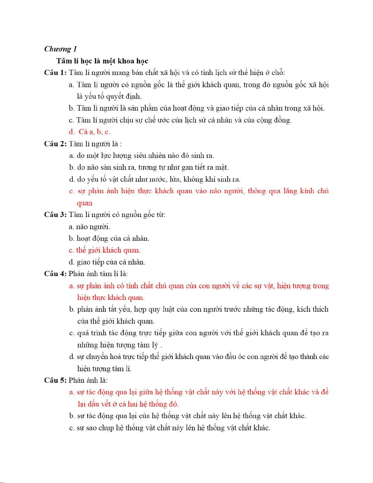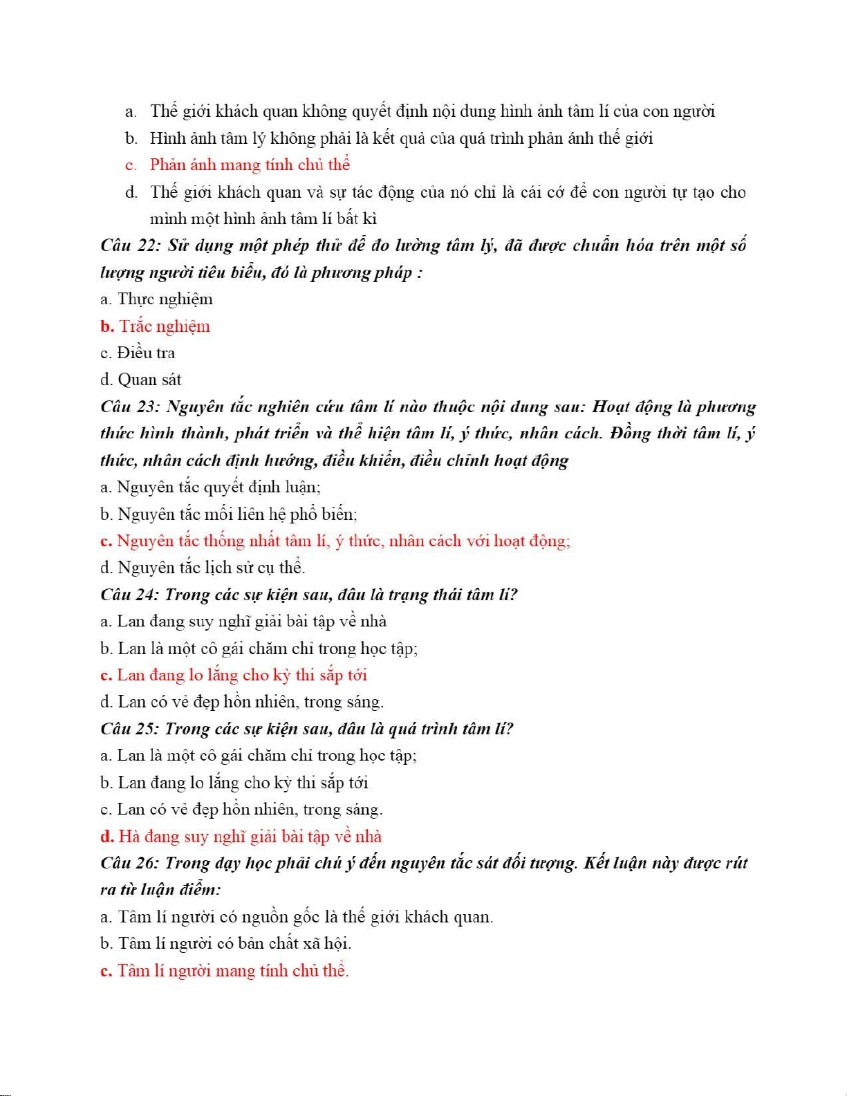 Câu 1: Tâm lý người mang bản chất xã hội và có tính lịch sử thể hiện ở chỗ. Trắc nghiệm Chương 1 - Tâm lý học | Trường Đại học Ngoại ngữ, Đại học Quốc gia Hà Nội. Tài liệu được sưu tầm gồm 6 trang, giúp bạn tham khảo, ôn tập và đạt kết quả cao!