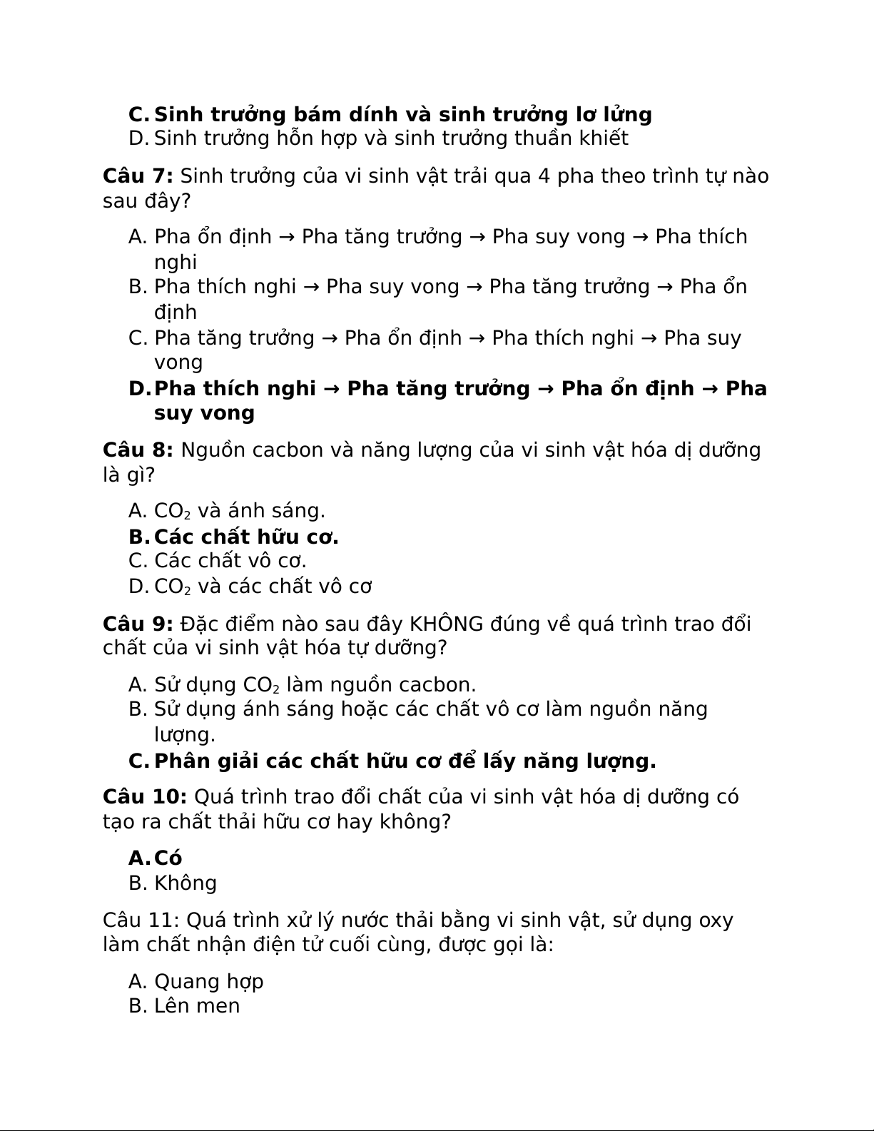 Câu 6: Hai kiểu sinh trưởng của VSV trong quá trình xử lý sinh học: