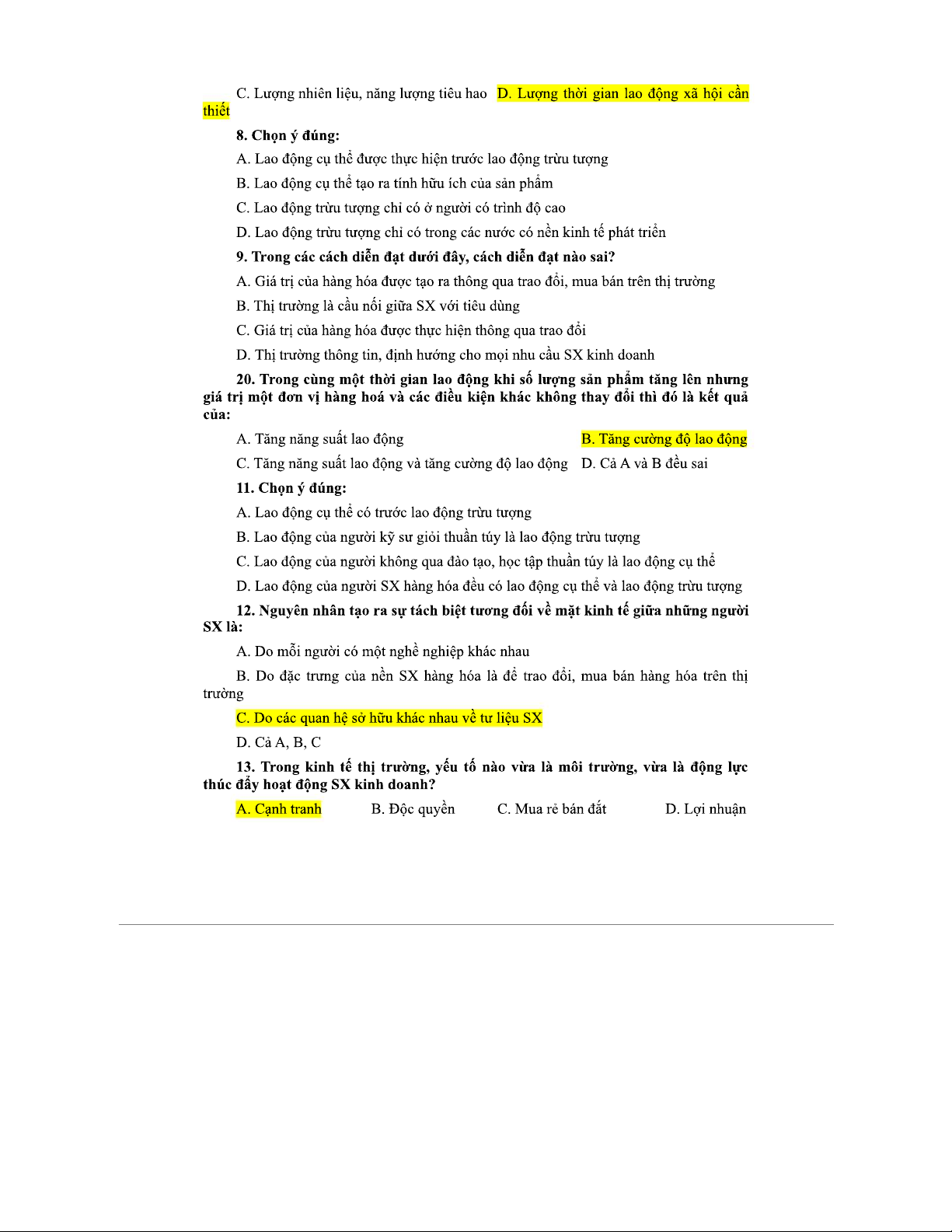 TRẮC NGHIỆM CHƯƠNG 2 - KINH TẾ CHÍNH TRỊ (KTCT)