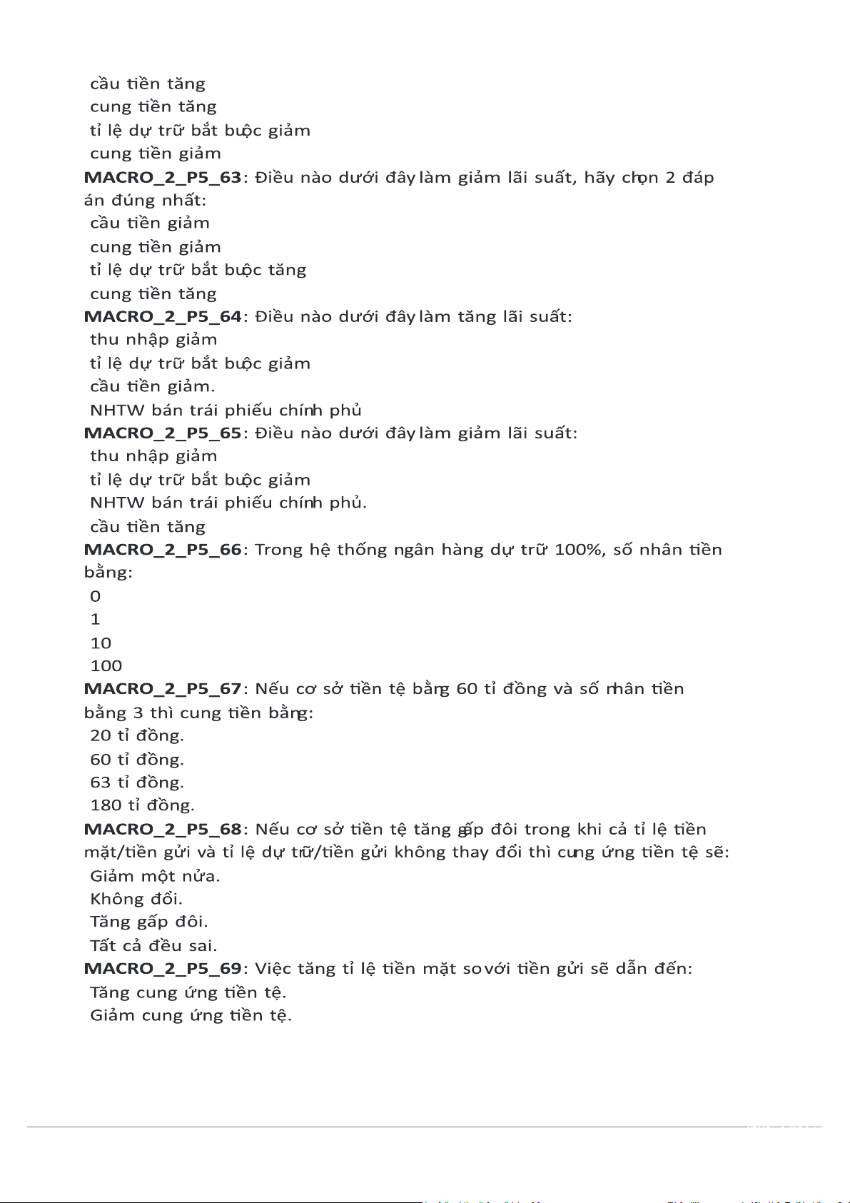 MACRO_2_P5_8: Nhân tố nào sau đây không gây ảnh hưởng đến lượng tiền cơ sở?
