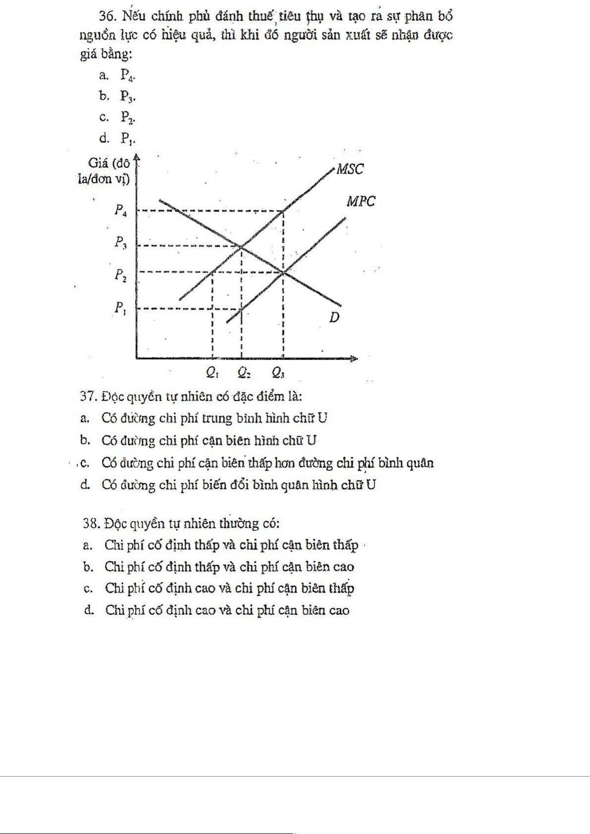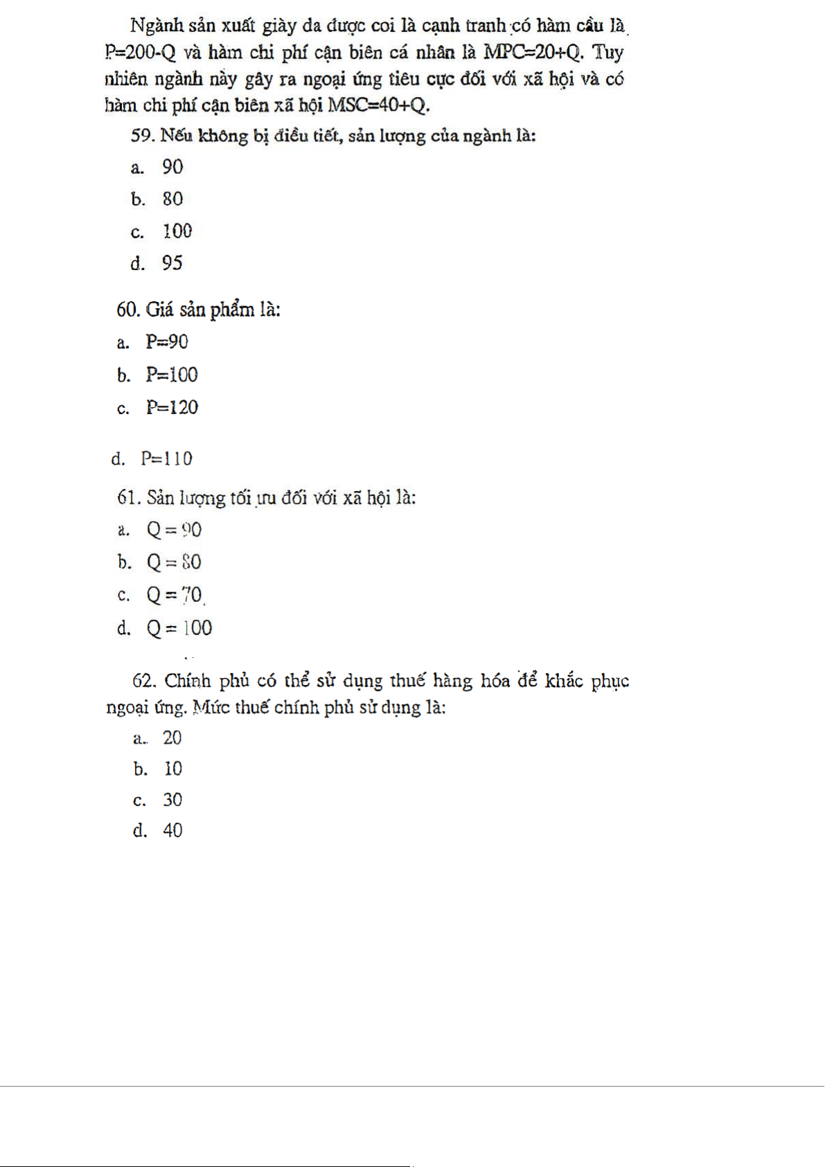 Trắc nghiệm Chương 8 - Các Khái Niệm Về Thất Bại Thị Trường và Hàng Hóa Công Cộng môn Kinh tế vi mô | Trường Đại học Kinh Tế Quốc Dân