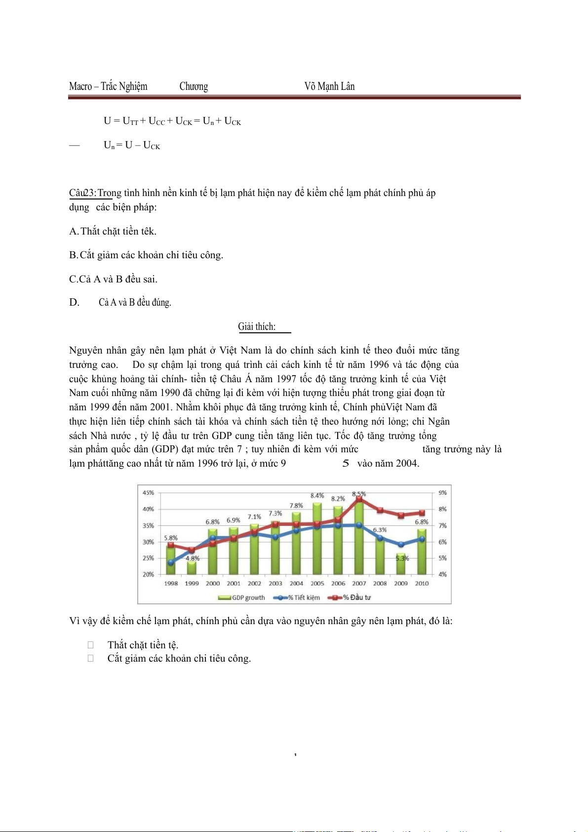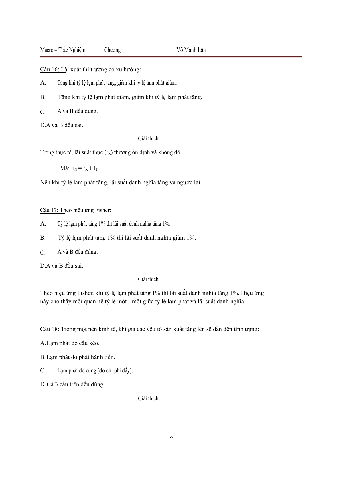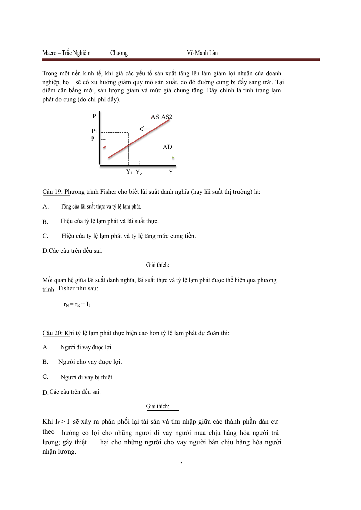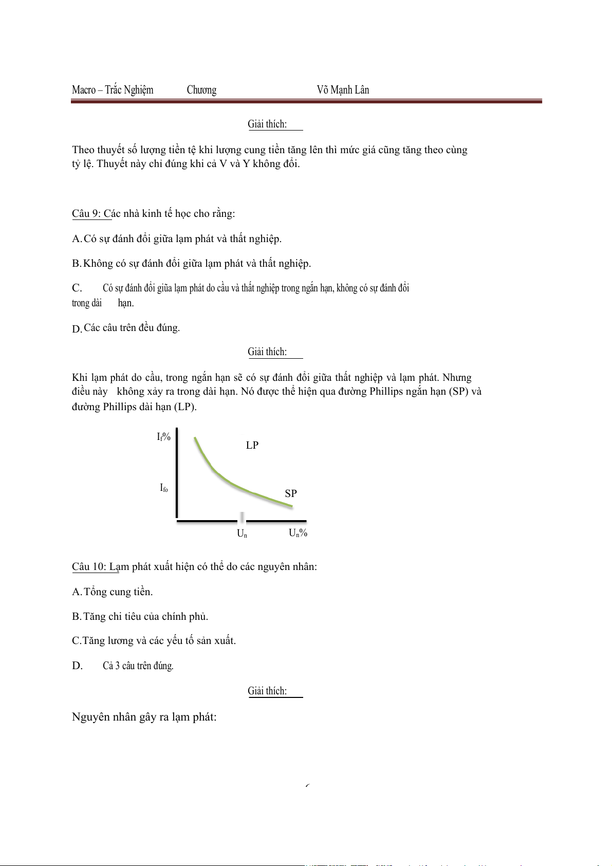 Lạm phát do cung (do chi phí đẩy). D.Cả 3 cầu trên đều . đúng Giải thích: 9 Macro – Trắc Nghiệm Chương Võ Mạnh Lân