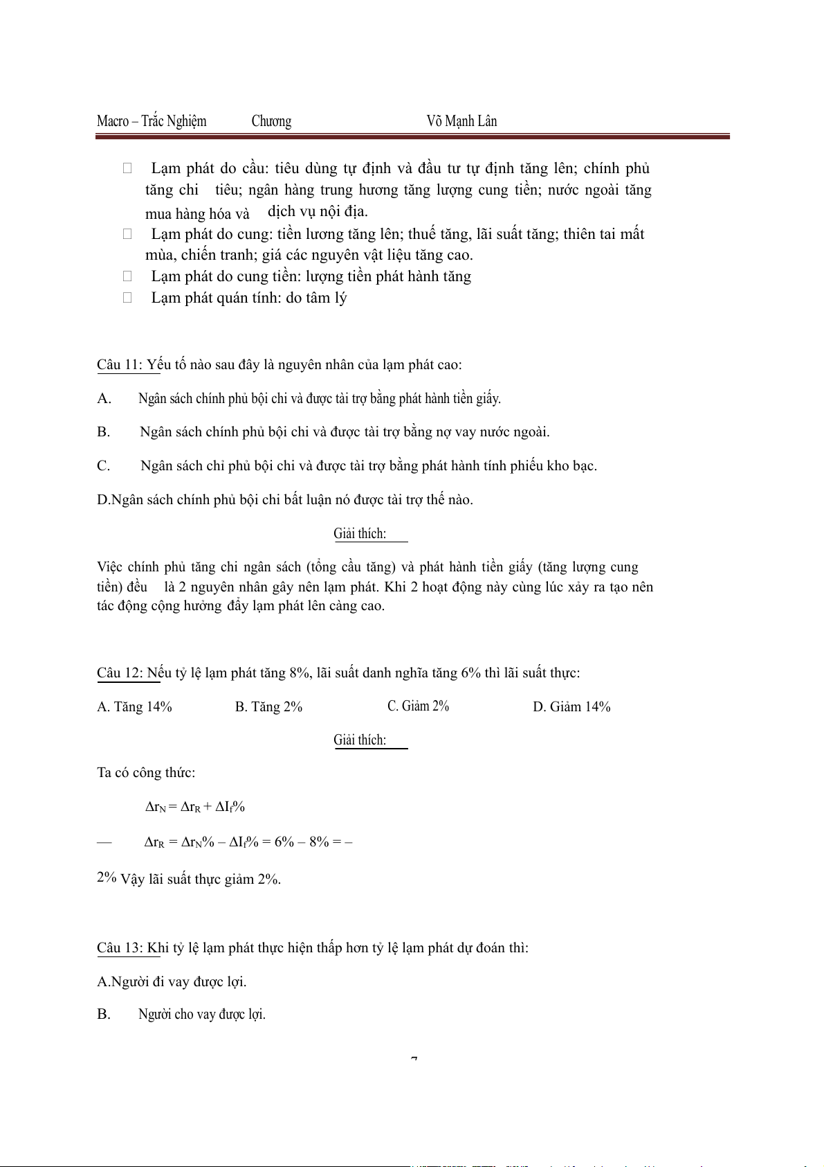 Người cho vay được lợi. 7 Macro – Trắc Nghiệm Chương Võ Mạnh Lân C. Người cho vay bị thiệt. D.Các câu trên đều sai. Giải thích: