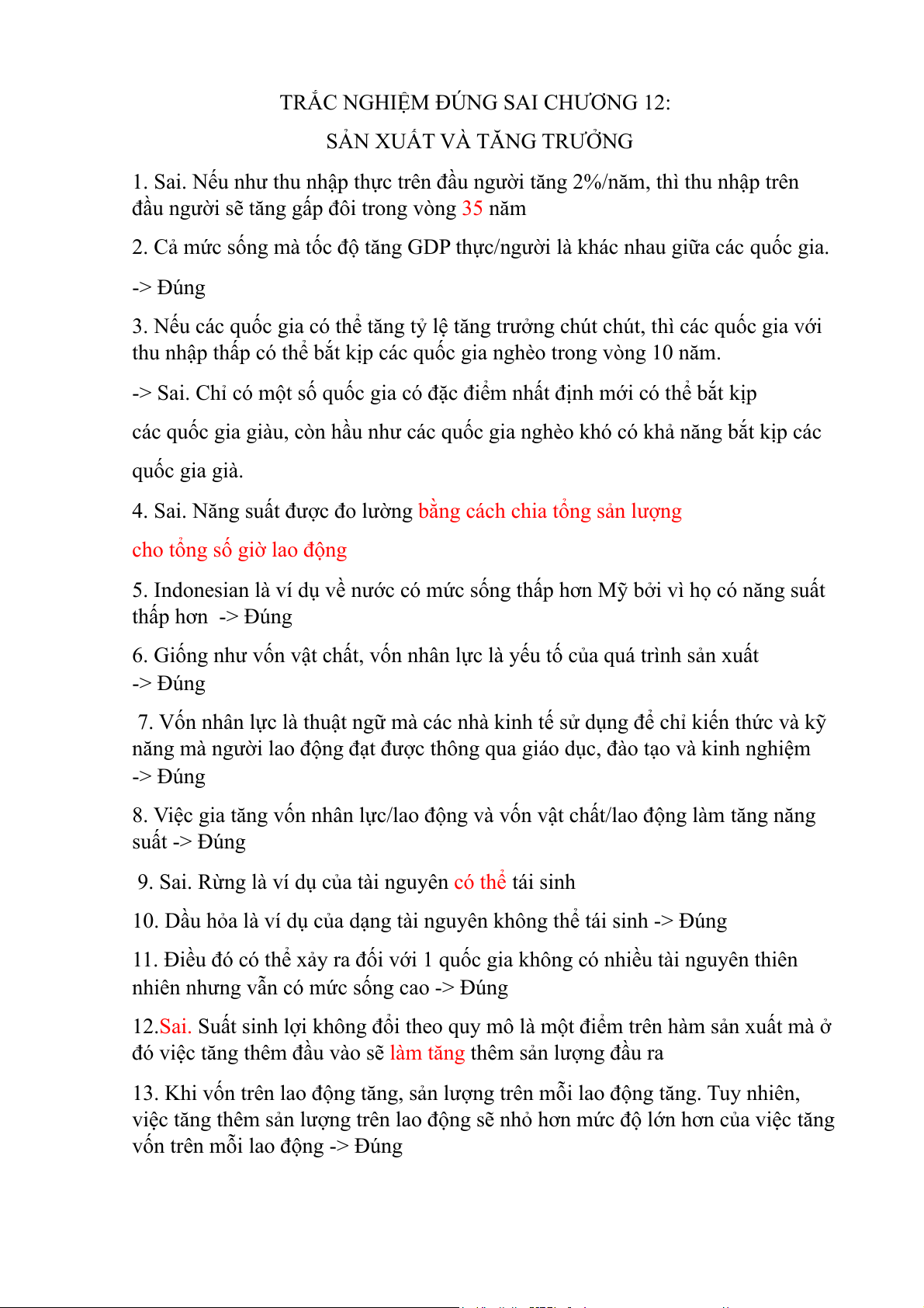 17. Sai. Việc gia tăng vốn sẽ gia tăng năng suất nếu nó được mua bán và hoạt