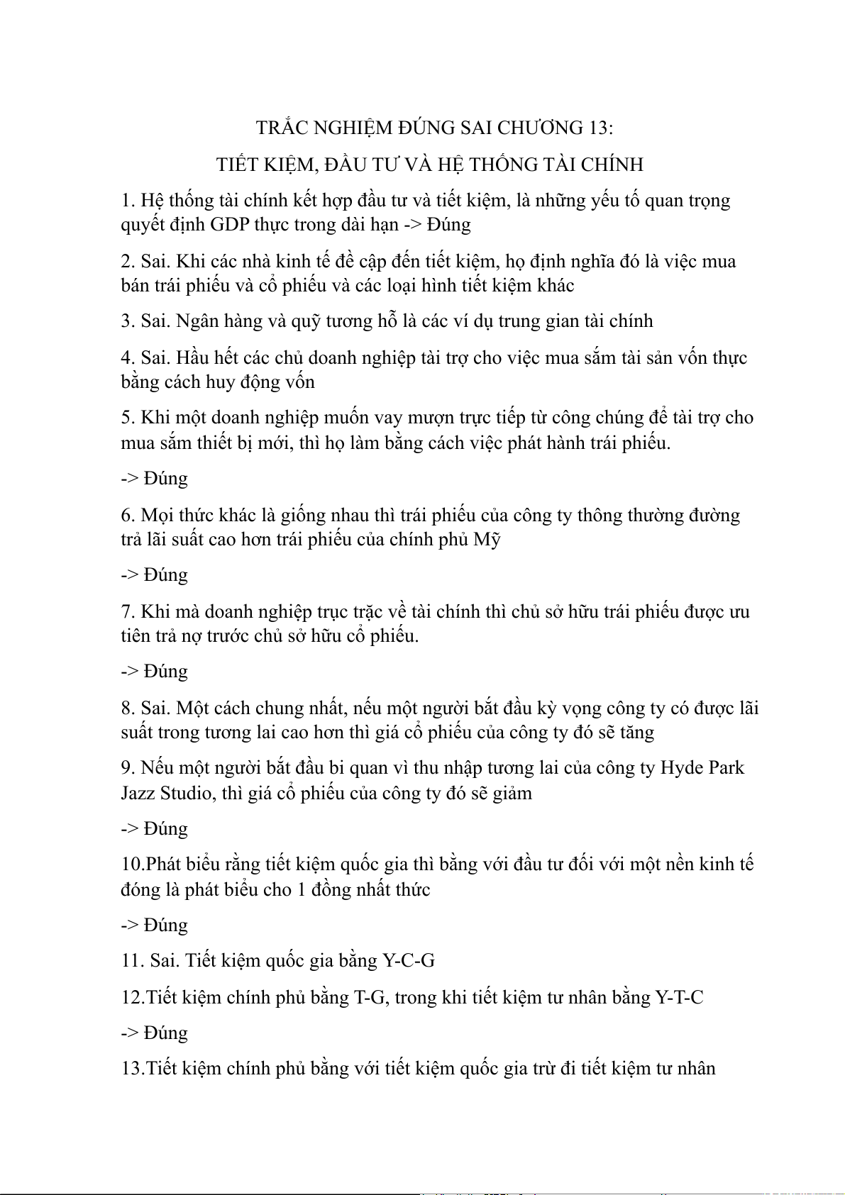 13.Tiết kiệm chính phủ bằng với tiết kiệm quốc gia trừ đi tiết kiệm tư nhân -> Đúng