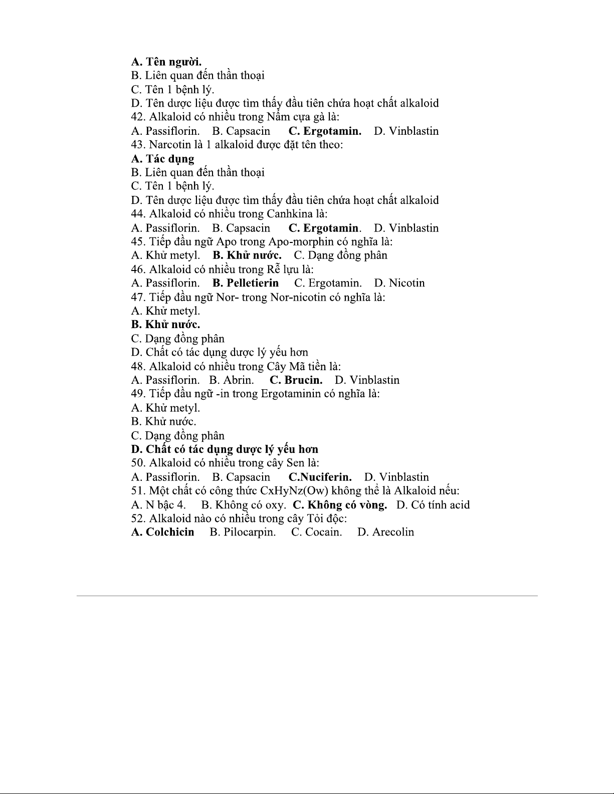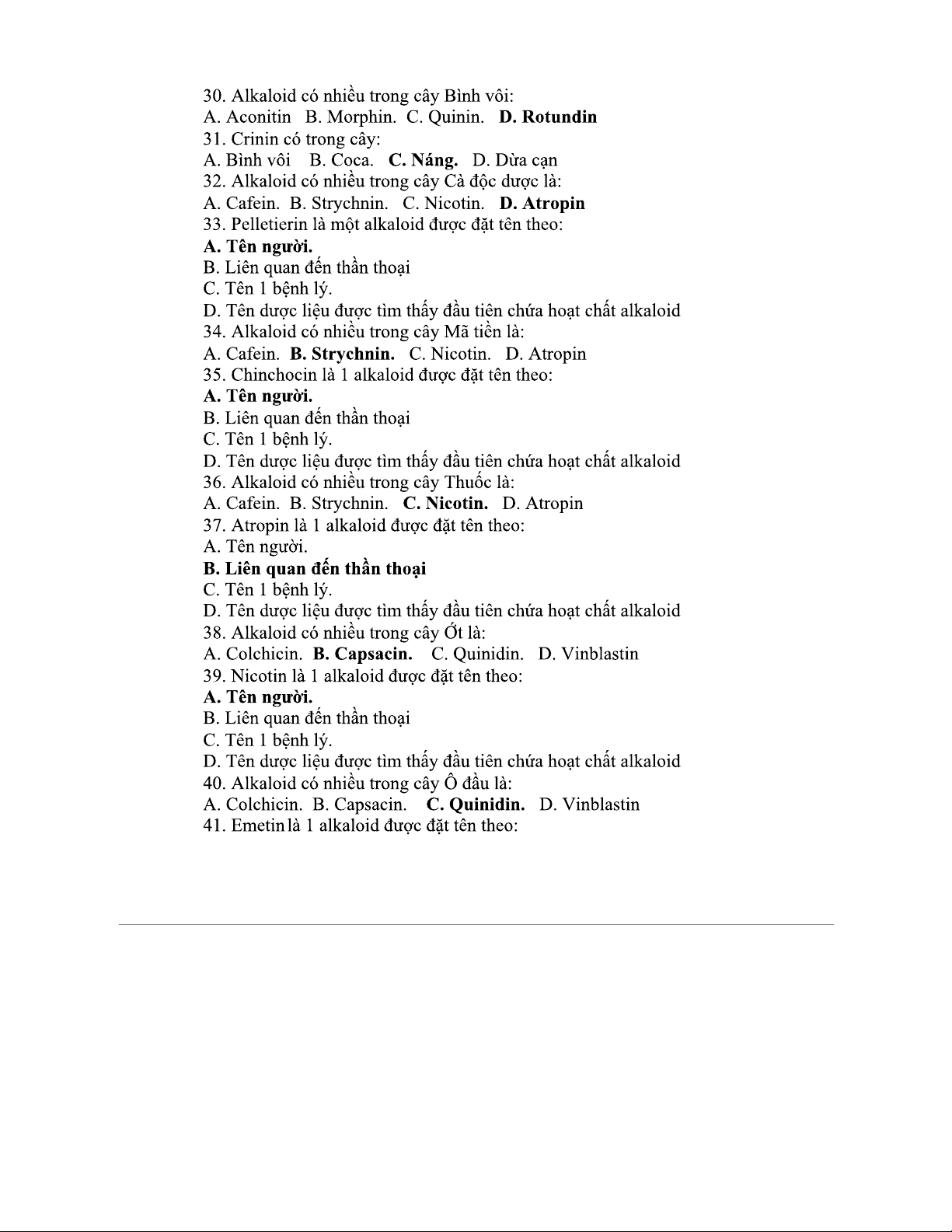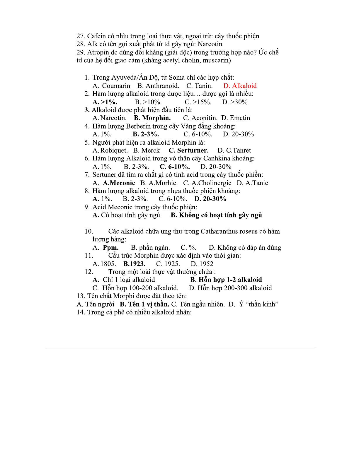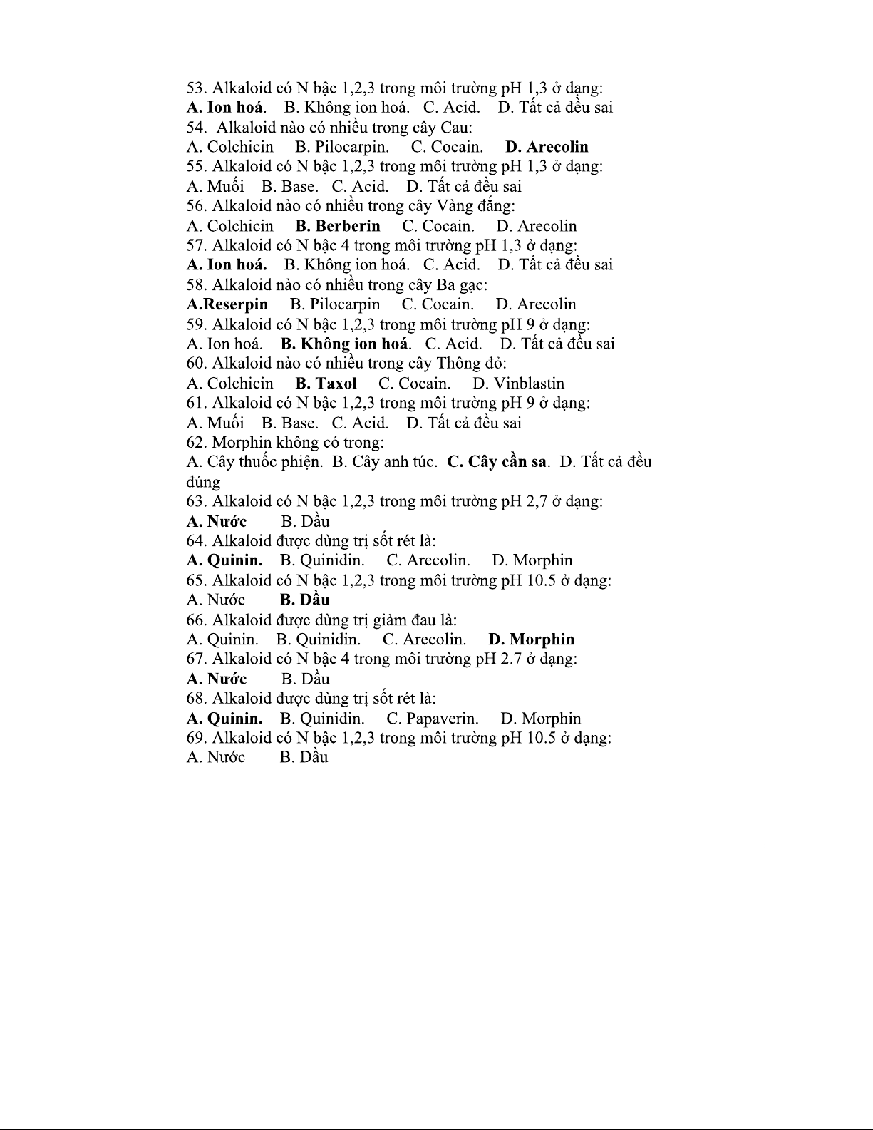 Trắc nghiệm Dược liệu 2 LT - Câu hỏi và đáp án chi tiết