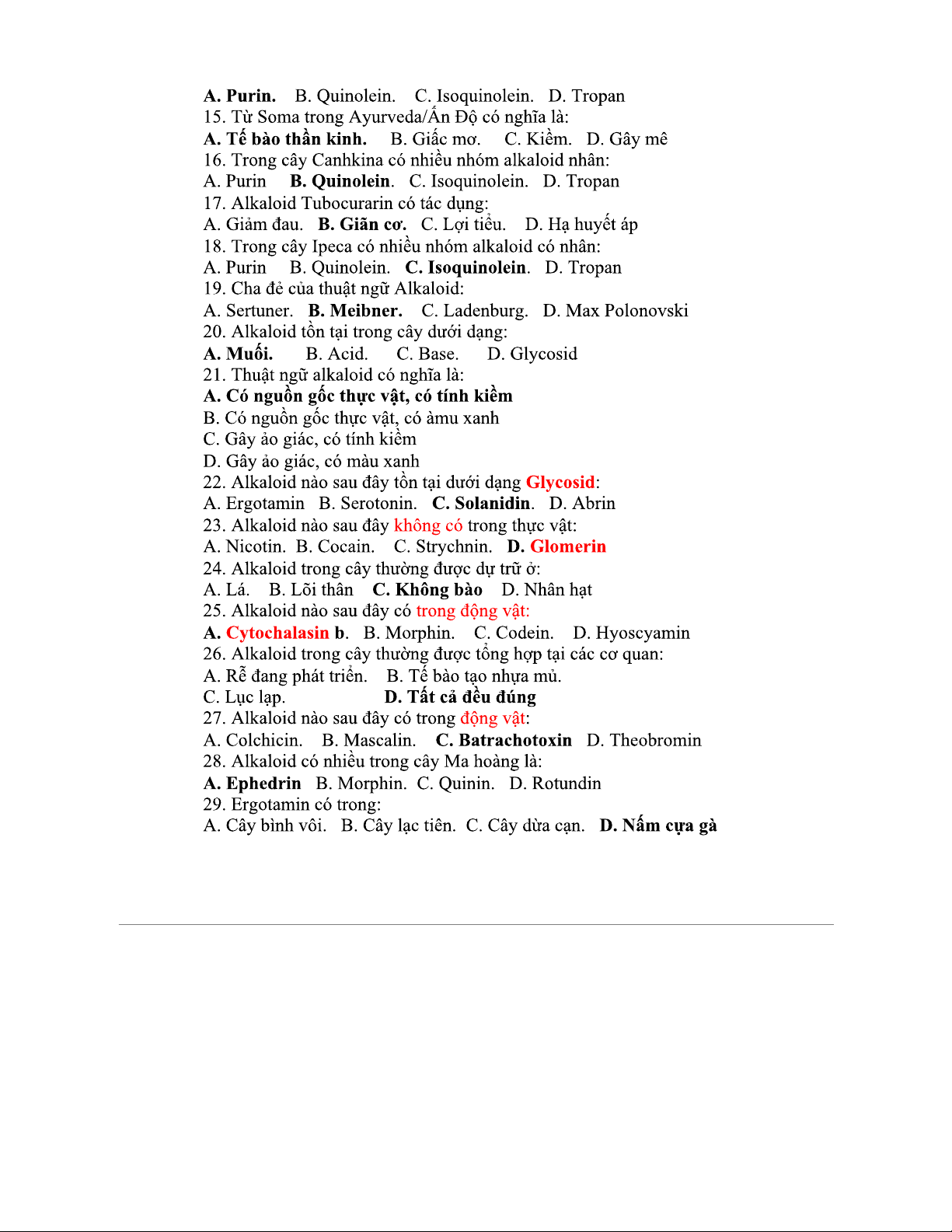 450 Câu Trắc Nghiệm Thực Vật Dược - Đáp Án Chi Tiết Theo Chương