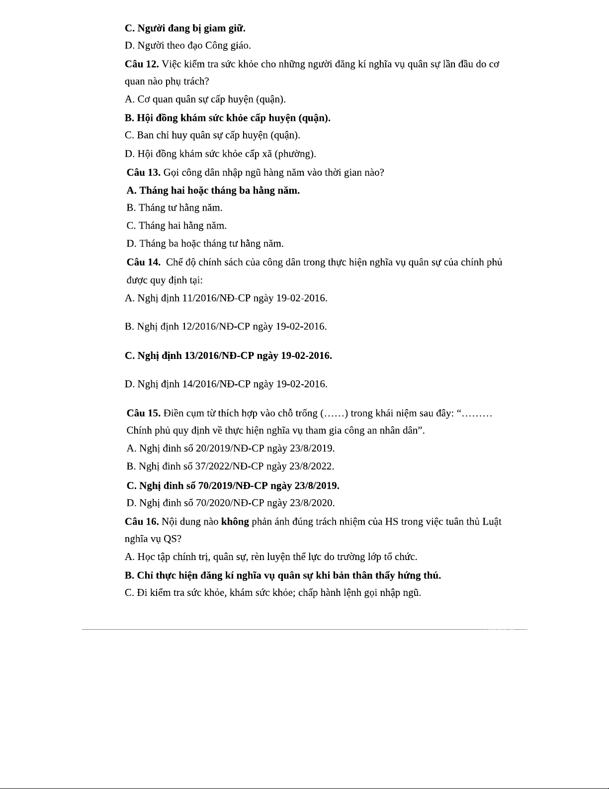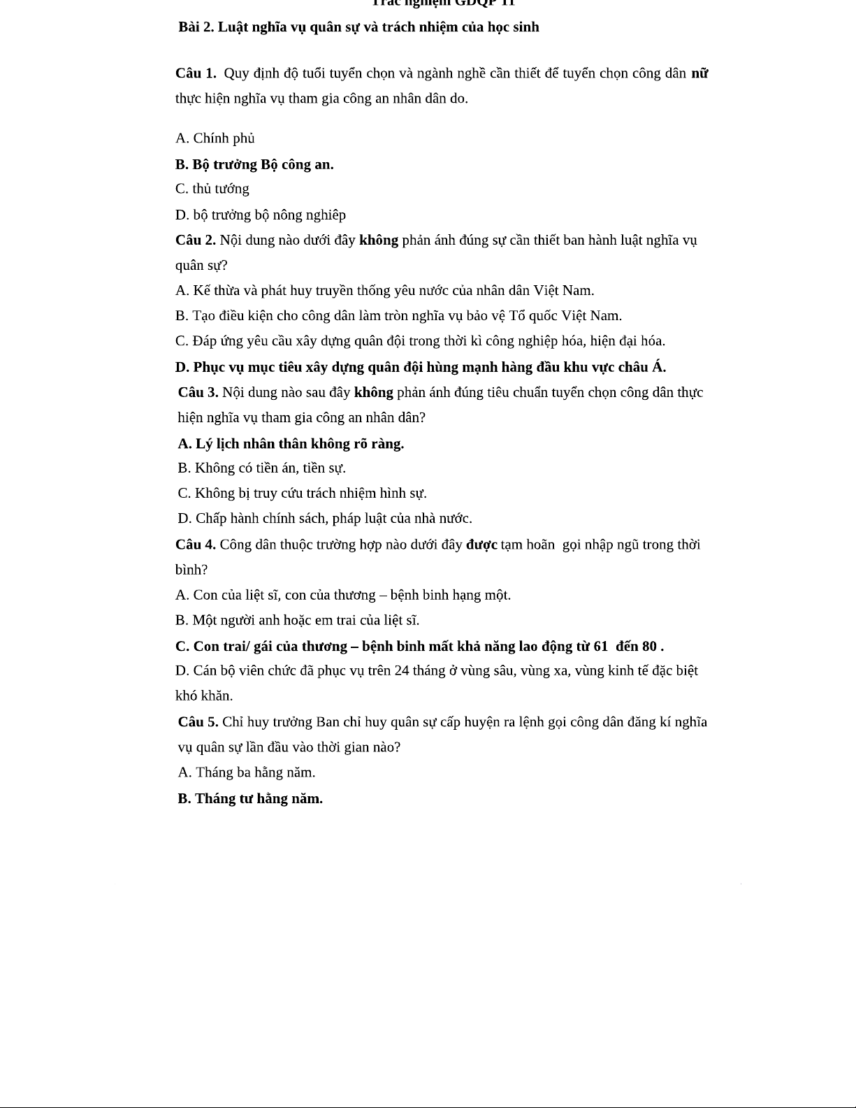 Trắc nghiệm GDQP 11: Bài 2 - Luật Nghĩa Vụ Quân Sự và Trách Nhiệm Học Sinh