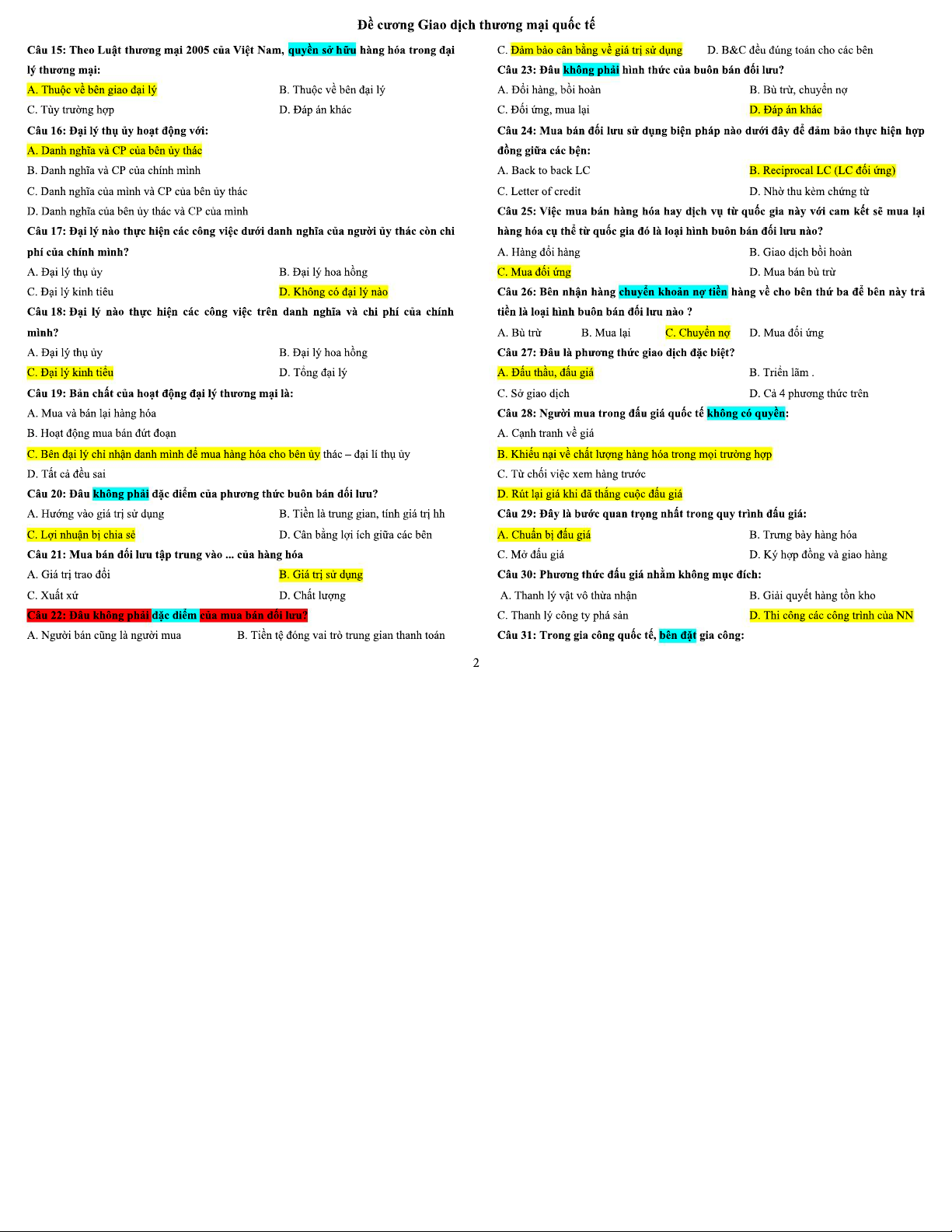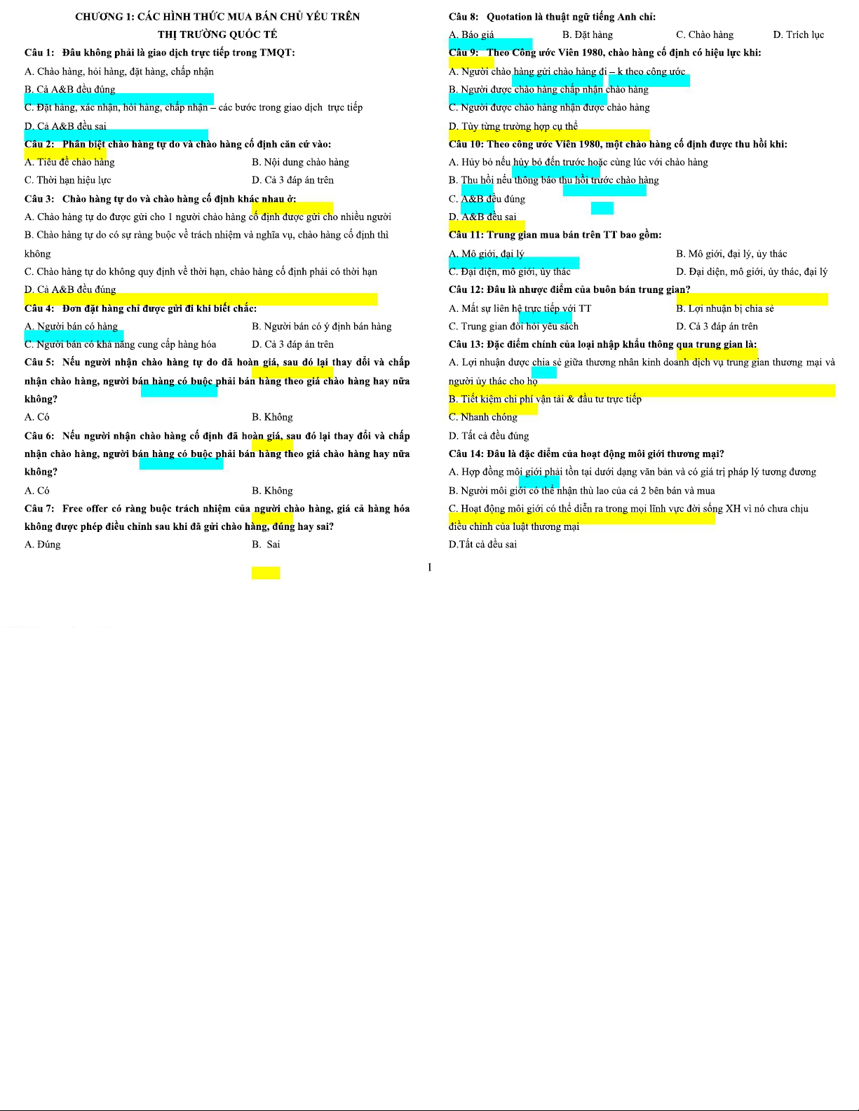 Trắc Nghiệm Giao Dịch Thương Mại Quốc Tế - Môn TMQT 101