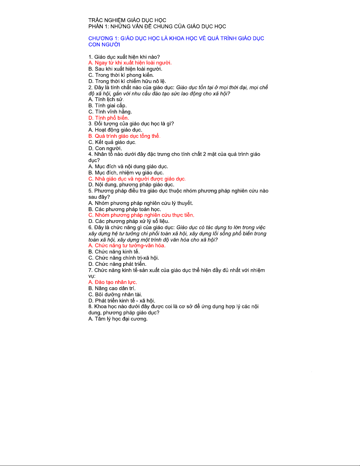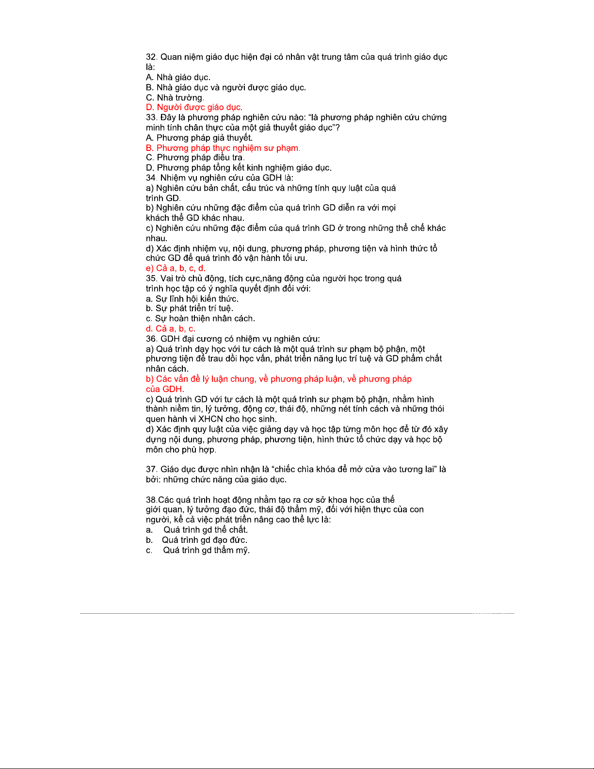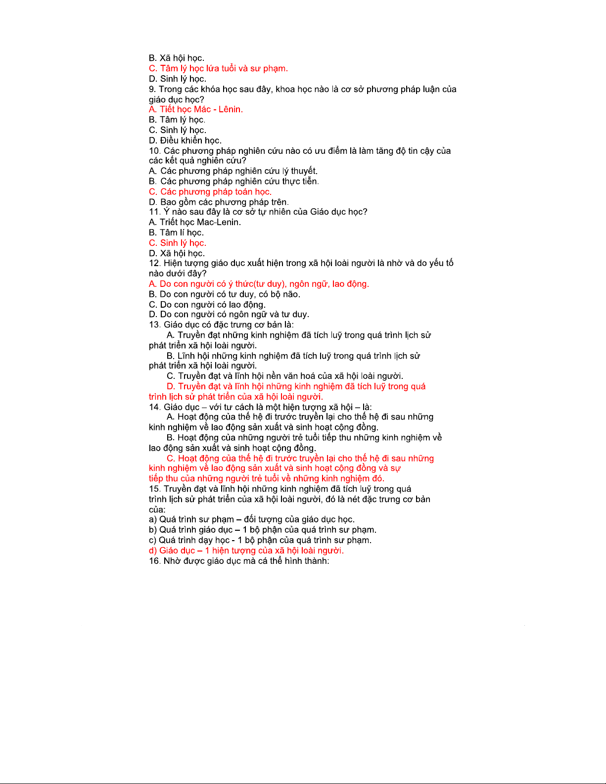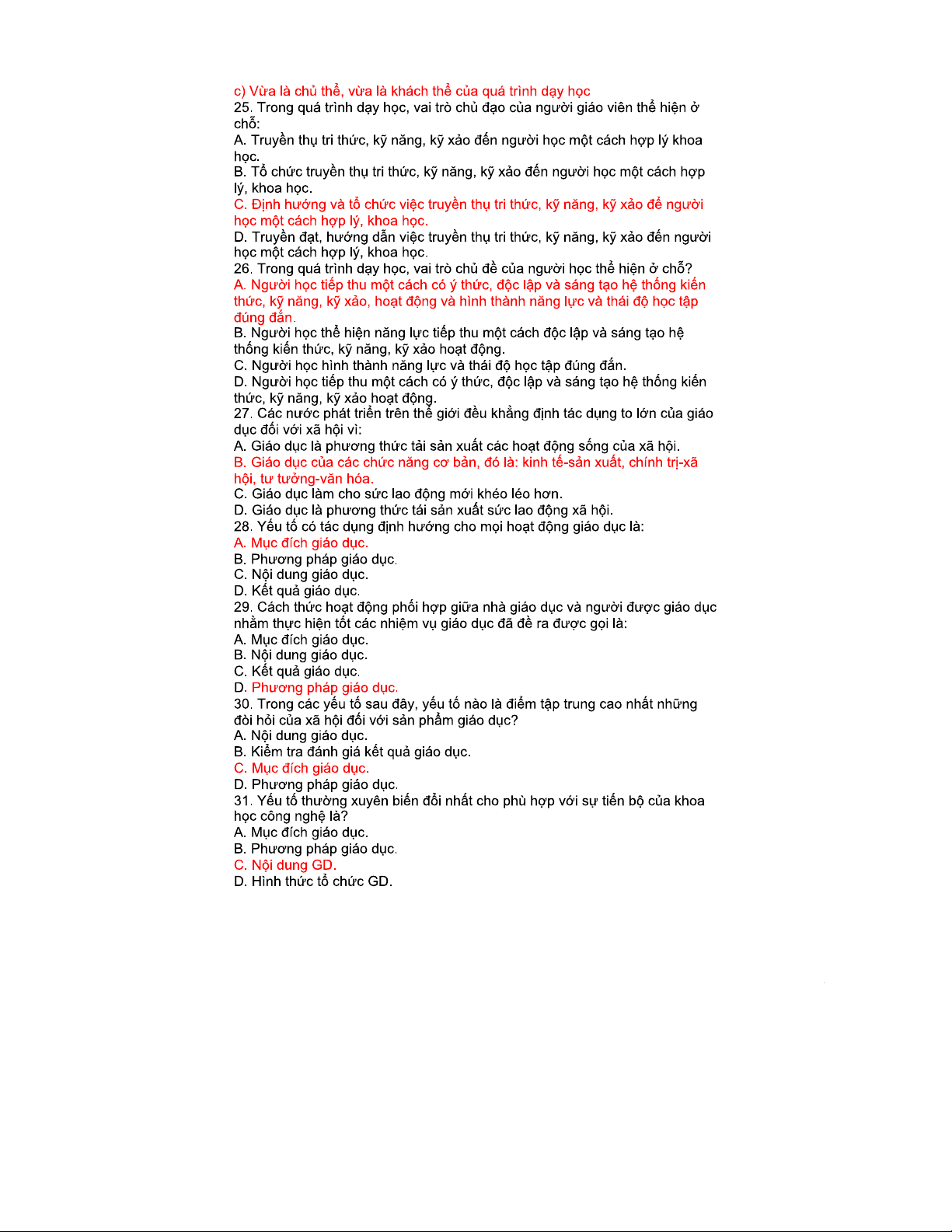 Trắc Nghiệm Giáo Dục Học - Ôn Tập Tổng Hợp và Giải Thích
