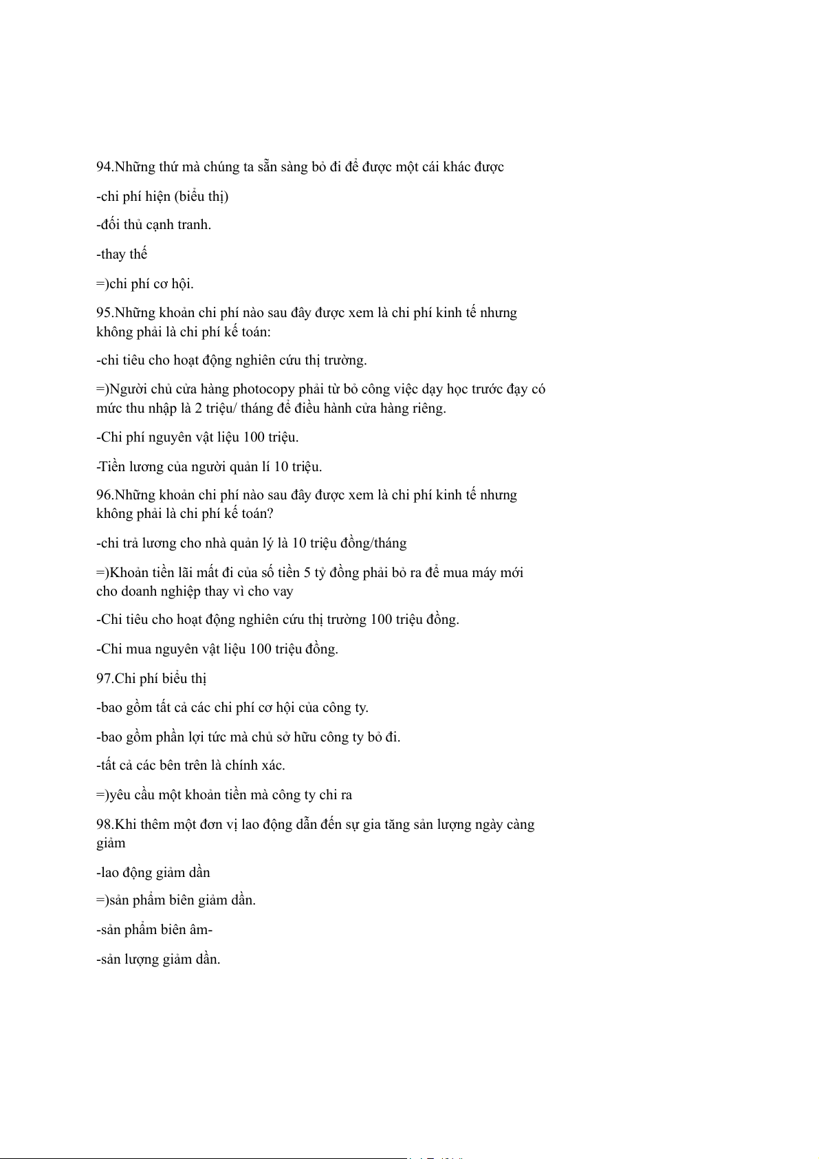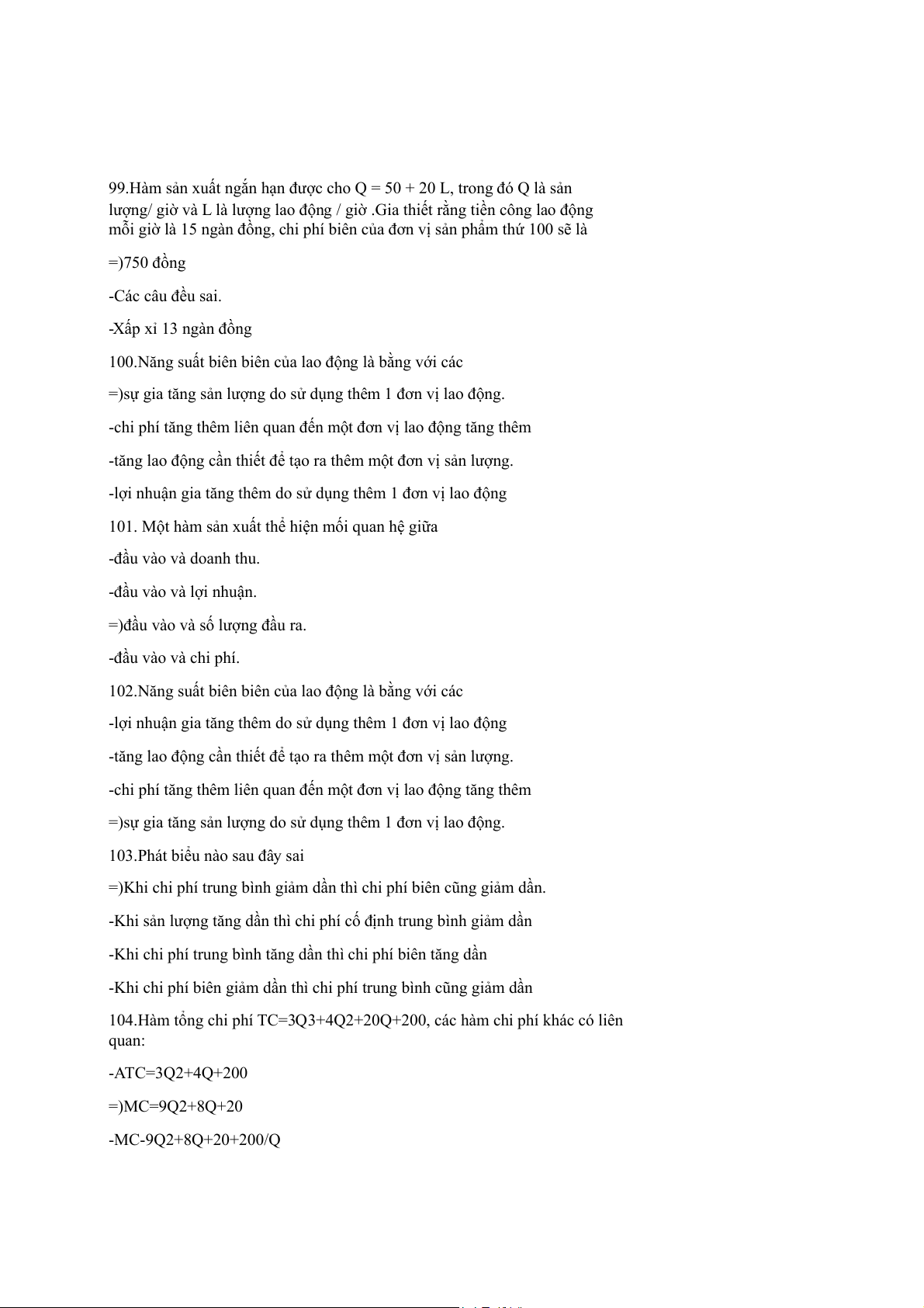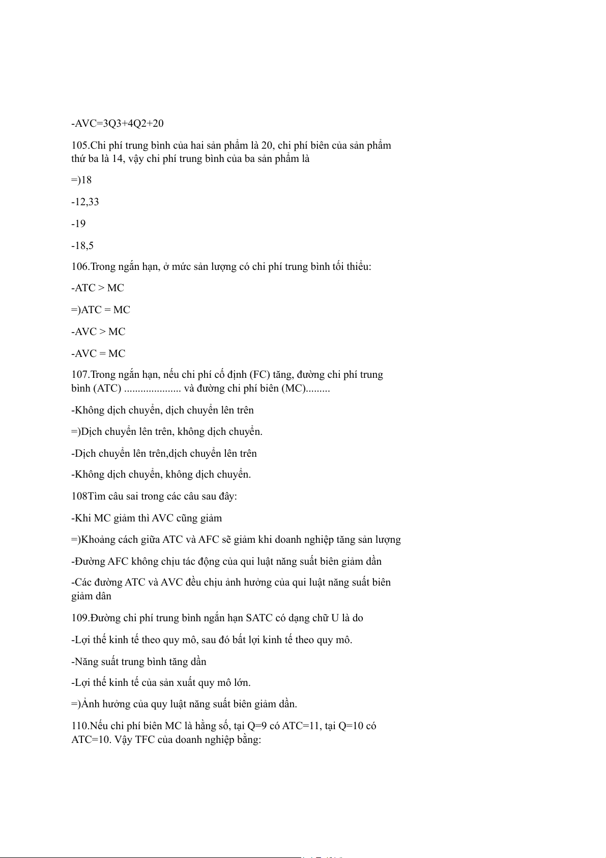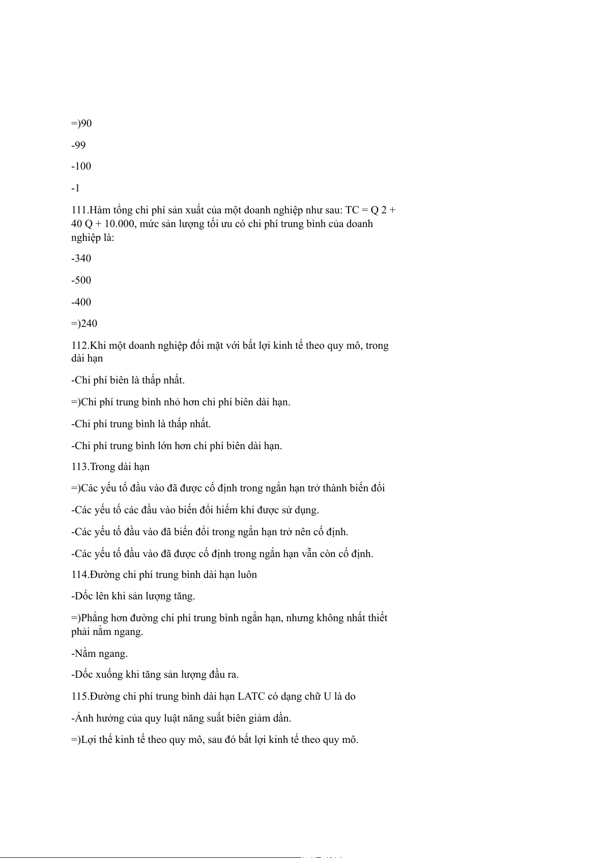 -Chi phí trung bình lớn hơn chi phí biên dài hạn. 113.Trong dài hạn