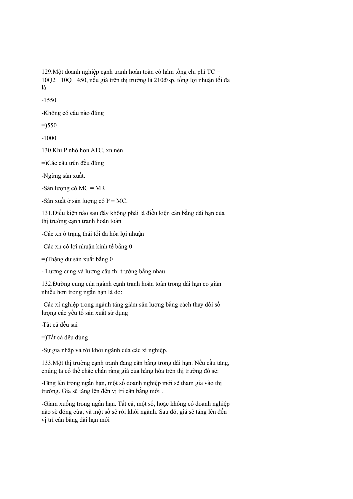 127.Trong thị trường cạnh tranh hoàn toàn có 200 xn, các xucó hàm chi phí