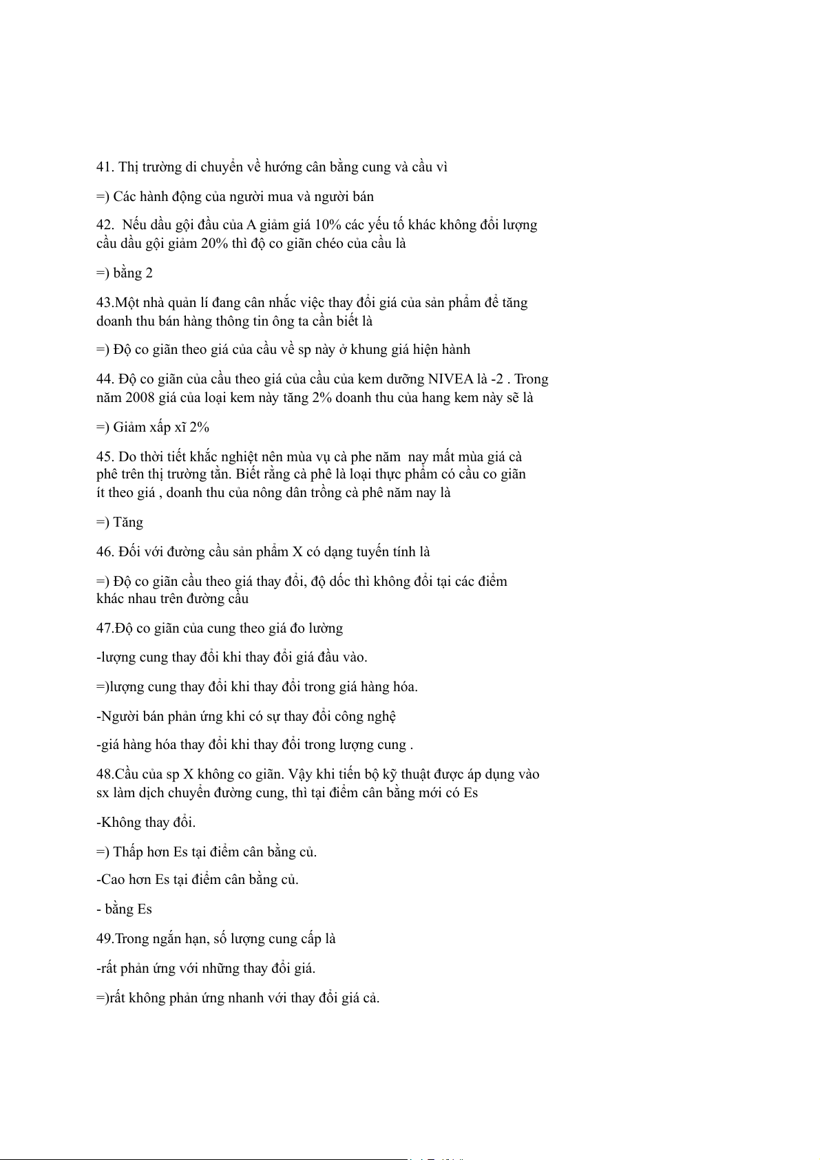 42. Nếu dầu gội đầu của A giảm giá 10% các yếu tố khác không đổi lượng