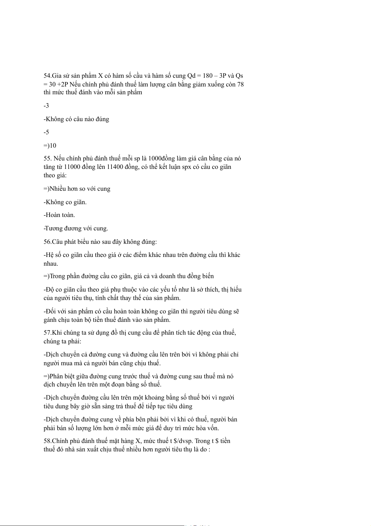 51.Thị trường của sp X cân bằng tại mức giáP =10, Q= 20.Tạiđiểm cân