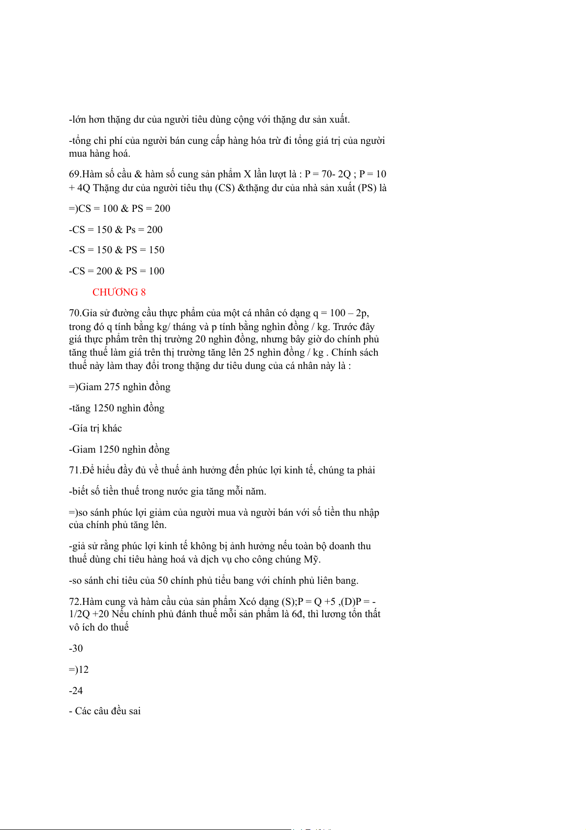cân bằng trên thị trường: -7,2 -Không có câu nào đúng =)18 -16,4