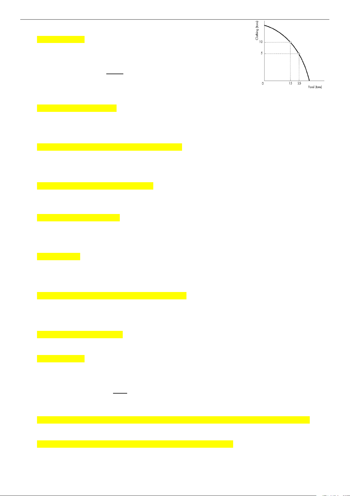Câu 11. Chi phí cơ hội của việc tăng thêm 1 đơn vị thực phẩm khi nền kinh tế