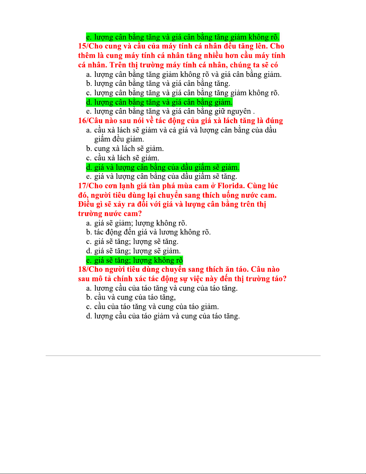 Trắc Nghiệm Kinh Tế Vi Mô Chương 2 - Hướng Dẫn Giải Đáp